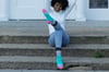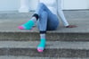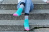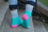 When I designed the Dottie Socks, I was envisioning a sock with bright, happy colors and something that would be relaxing to knit. We have a tradition in our family to always bake a homemade decorated cake for each other’s birthdays. Throughout the years, I have decorated many colorful cakes, spending lots of time piping different colors of frosting and using a variety of sprinkles and candy to bring joy to my family’s birthdays. Dottie reminded me of that joy with the sprinkle of dots and blocks of color.