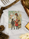 Keywords: vintage Christmas postcard, family Christmas scene, nostalgic holiday card, holiday storefront illustration, retro Christmas decor, Santa window display, printable Christmas card, vintage-inspired holiday art, seasonal gift tags, holiday scrapbook supplies, classic holiday postcard.