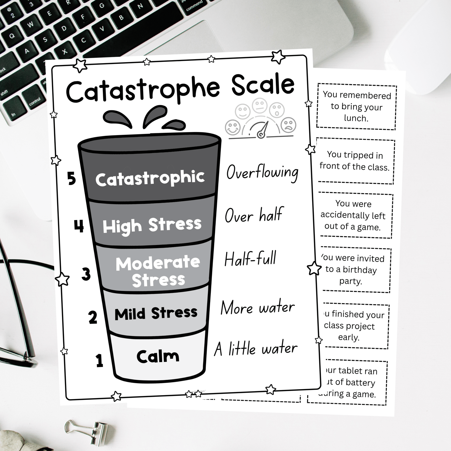 Help students recognize the size of a problem with this interactive Catastrophe Scale activity! This social-emotional learning resource includes a visual anchor chart and 40 real-life scenario cards that guide kids in understanding their emotional reactions—from calm to catastrophic.
