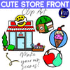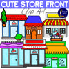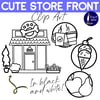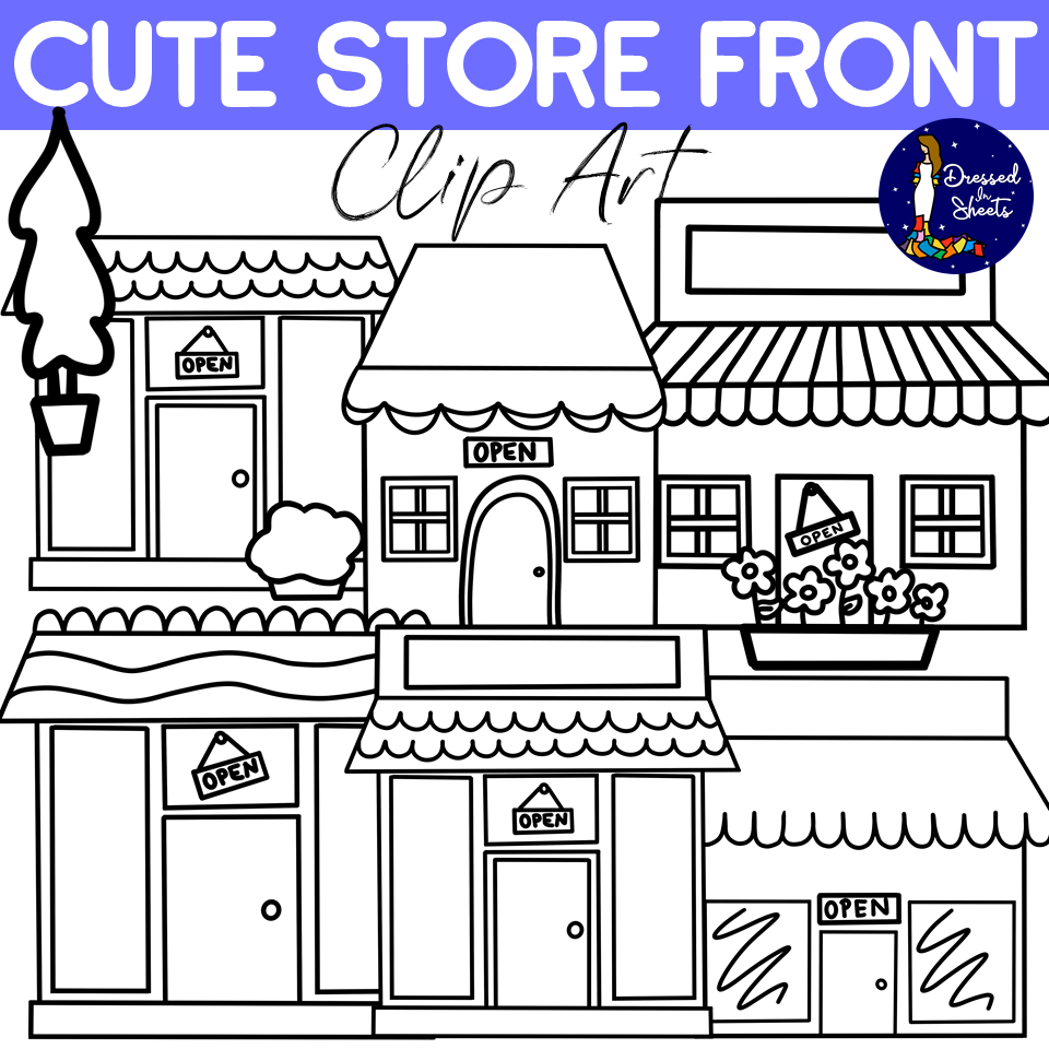 Contains: bush, coffee, store logo, flowers, ice cream store logo, pet store logo, shopping cart, 6 different designed store fronts, supermarket store logo, tree.