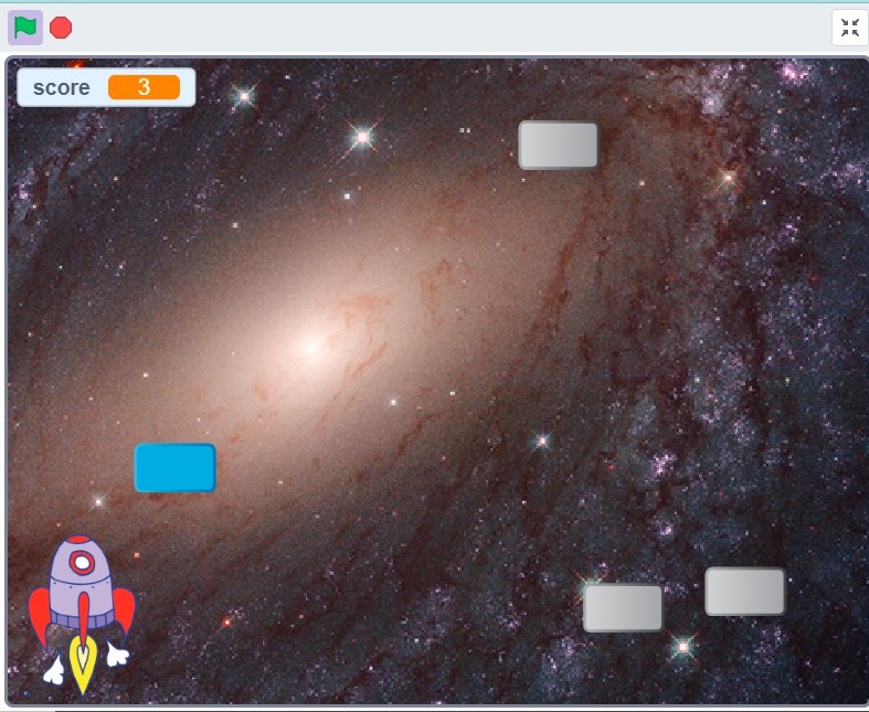 - Objective: The player controls a space rocket ship and must destroy enemies to score points. The goal is to reach 10 points to win the game. If the player's score drops below 0, the game is over.