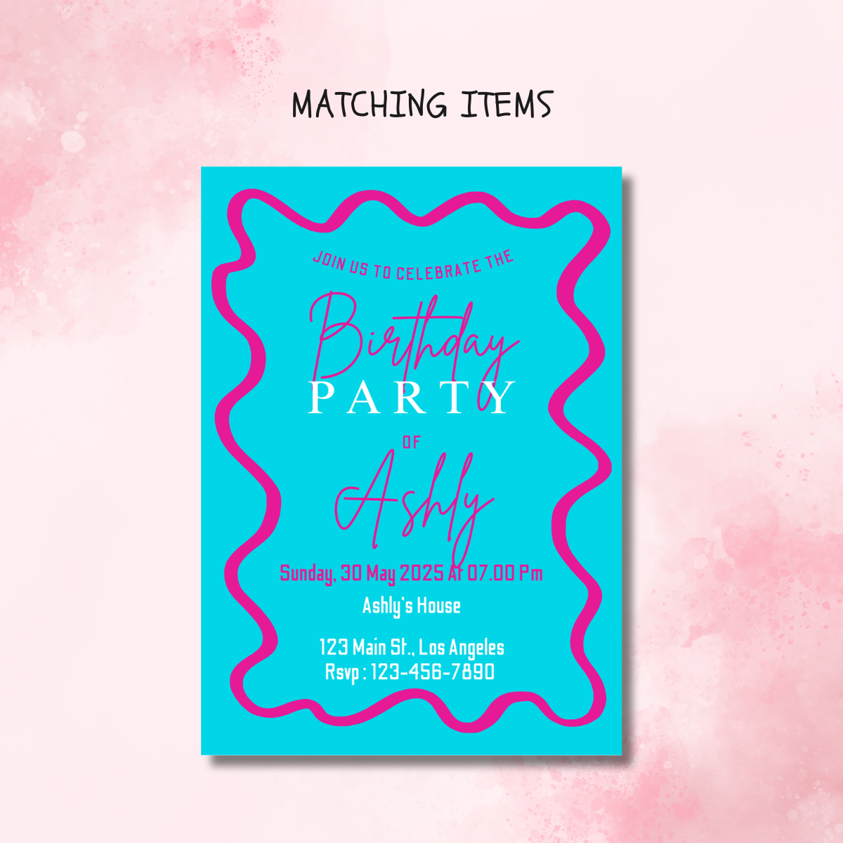 Retro Birthday Party Invitation Template, 70s wavy Birthday Party