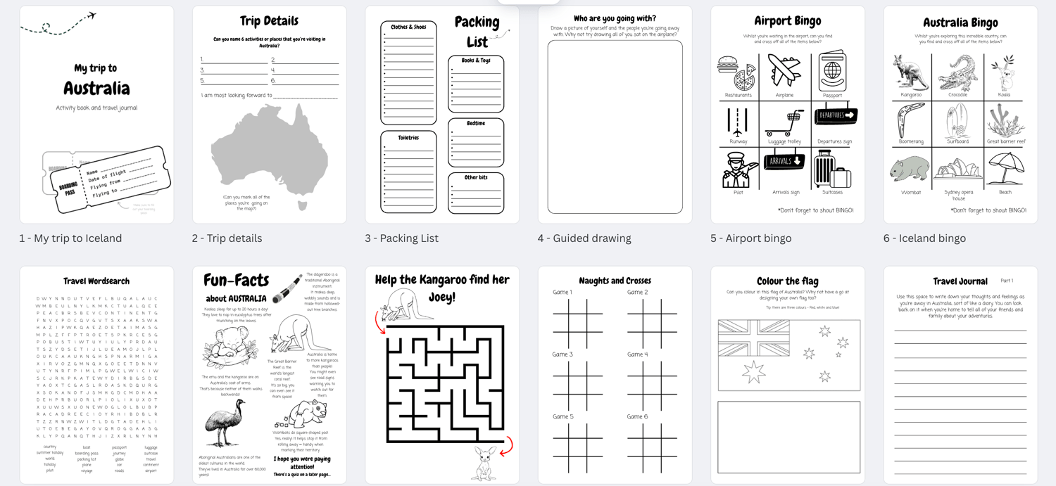 Koalas, coral reefs and kangaroos! “My Trip to Australia” is a printable travel journal and activity pack for kids – created to turn your family holiday into an adventure they’ll actually remember (and give you five minutes' peace while you’re at it).