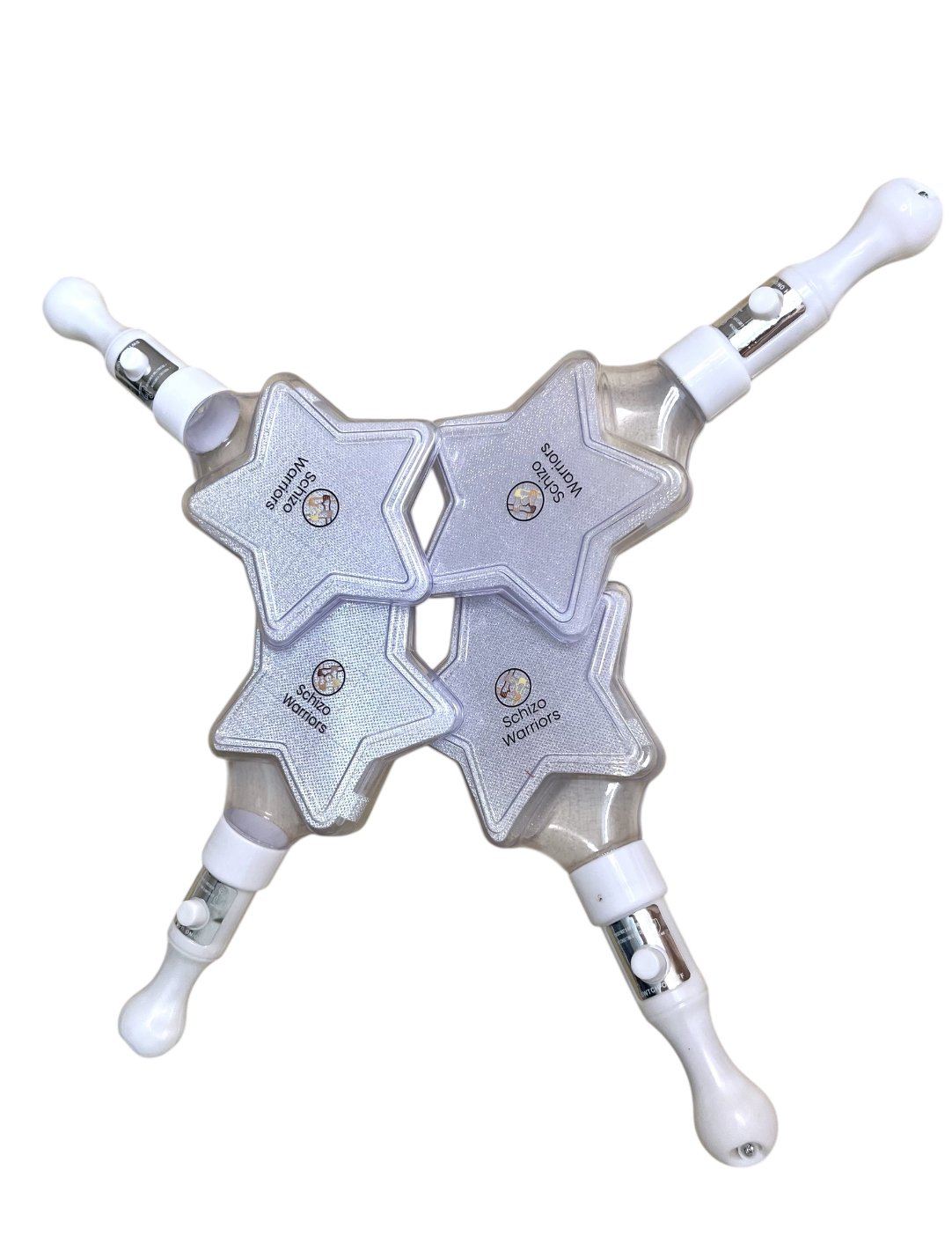 The Schizo Warriors Starry White Light Stick is a symbol of hope, strength, and the light at the end of the tunnel. Crafted from durable white plastic and filled with subtle sparkles, it glows with a soft, starry shimmer — representing the inner strength of those who walk through the unseen battles of the mind.