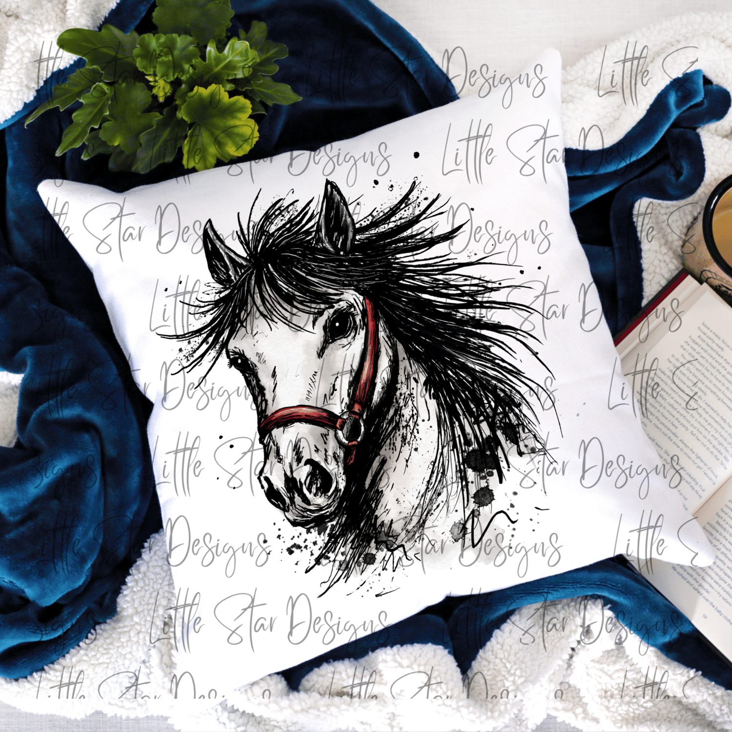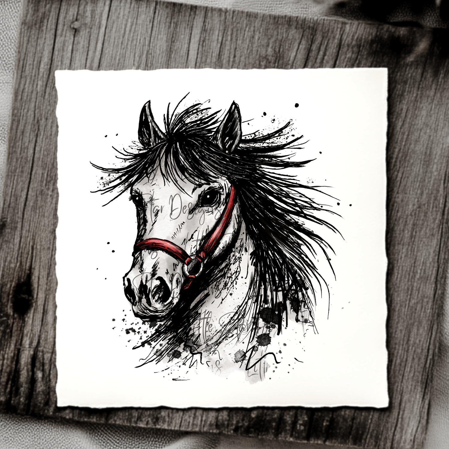 ⭐️ Inky Watercolour illustration featuring a horse with red bridle (1 PNG)