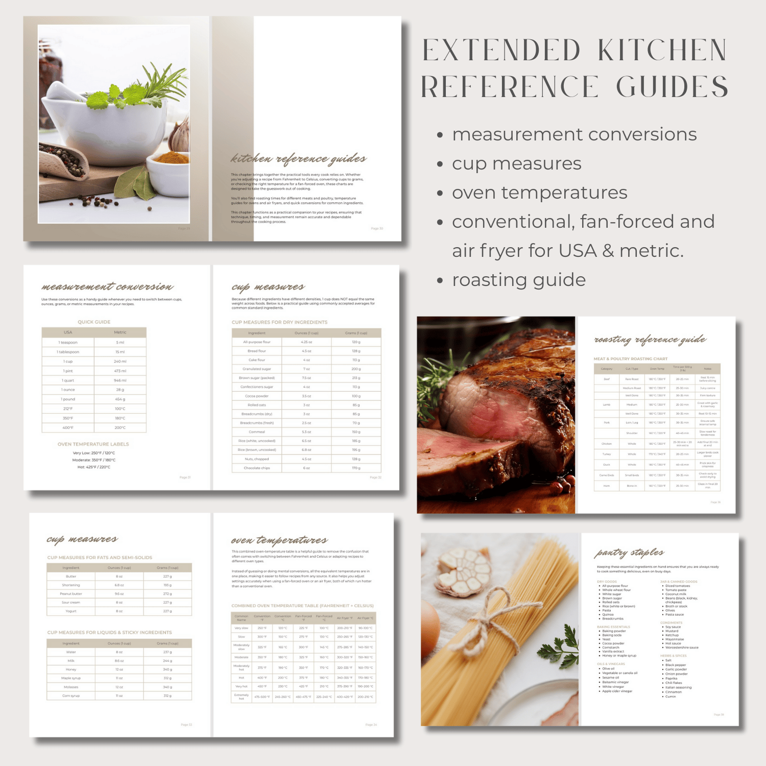 - 6 pages of kitchen reference guides.
