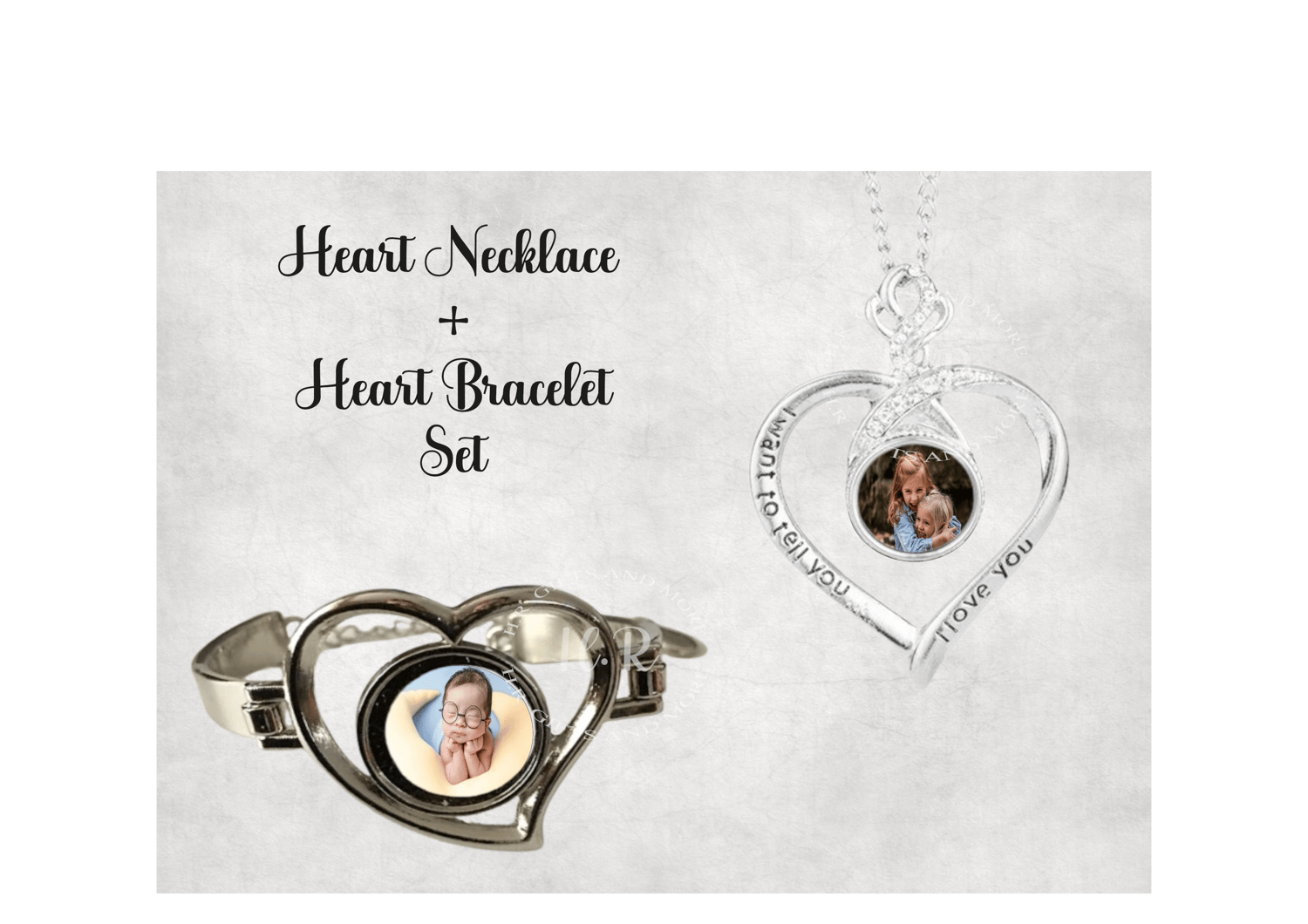 Personalised Heart Bracelet and Necklace Photo Set