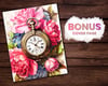 23 Blooming Antiques Coloring Book, Adults kids Instant Download -Grayscale Coloring Book -Printable PDF, Flowers, Watches, Dresses, Cute