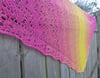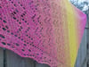 Coverack is worked sideways to create a large crescent shawl which shows off the Zauberperlen gradient set. Shawl can also be knitted in one colour.