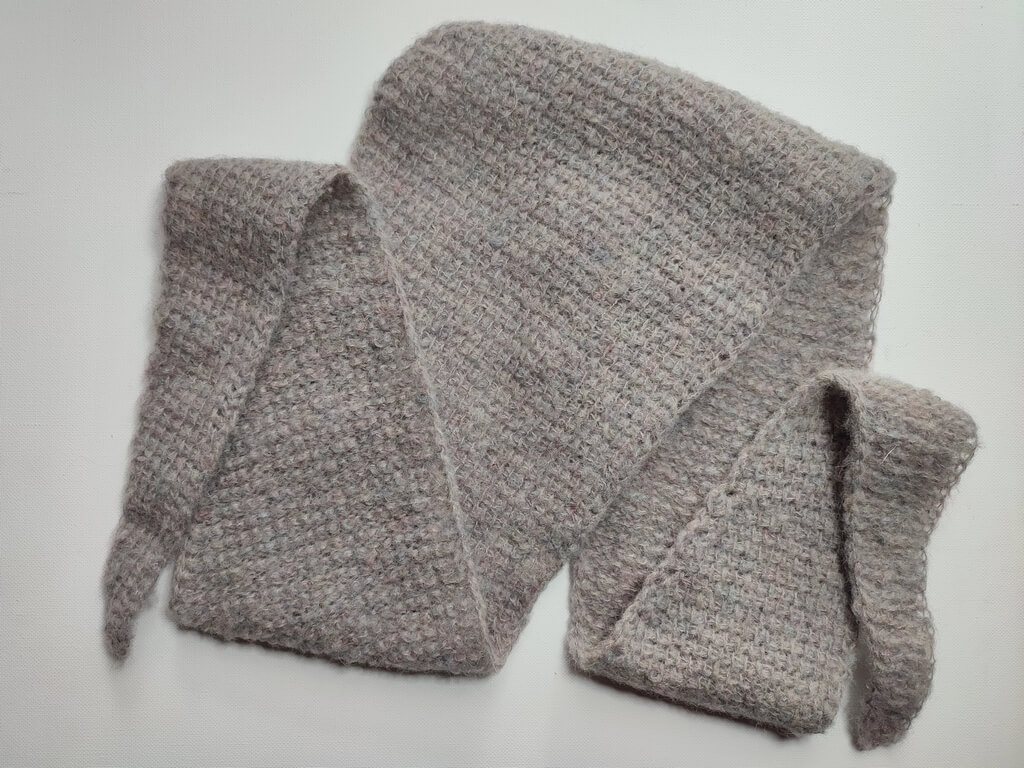 This is a pattern for a narrow triangle scarf that you can even make bigger into a shallow shawl. You also have the option of making it into a regular scarf with narrow ends.