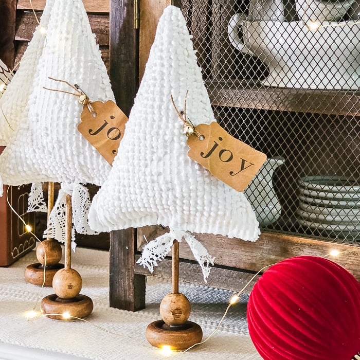 Made from a vintage white Bates hobnail chenille bedspread, these trees will add homespun charm to your holiday decor! Firmly stuffed and the same on the backside.