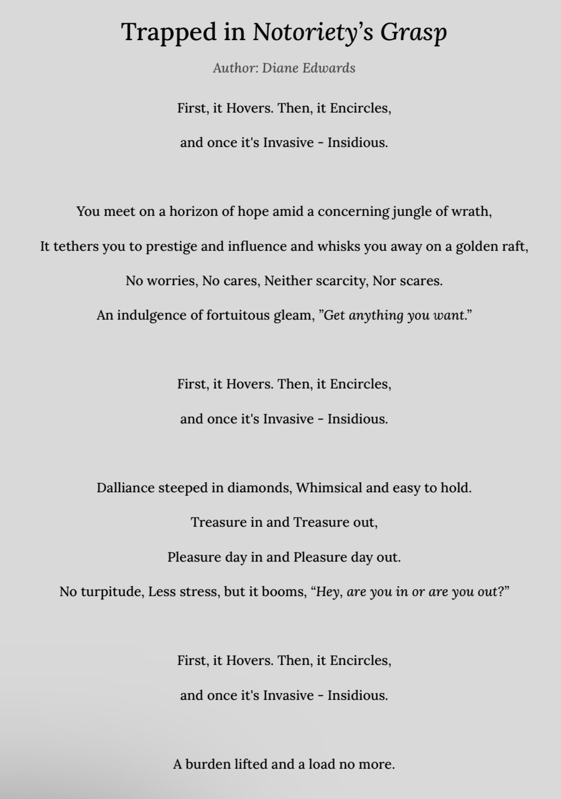 (Poem & Audio) - Trapped in Notoriety’s Grasp