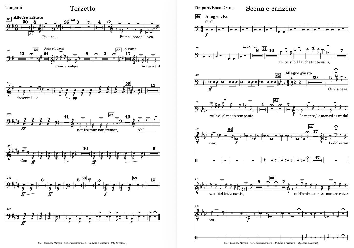 - 1 or 2 percussionist: timpani, bell, cymbals, bass drum