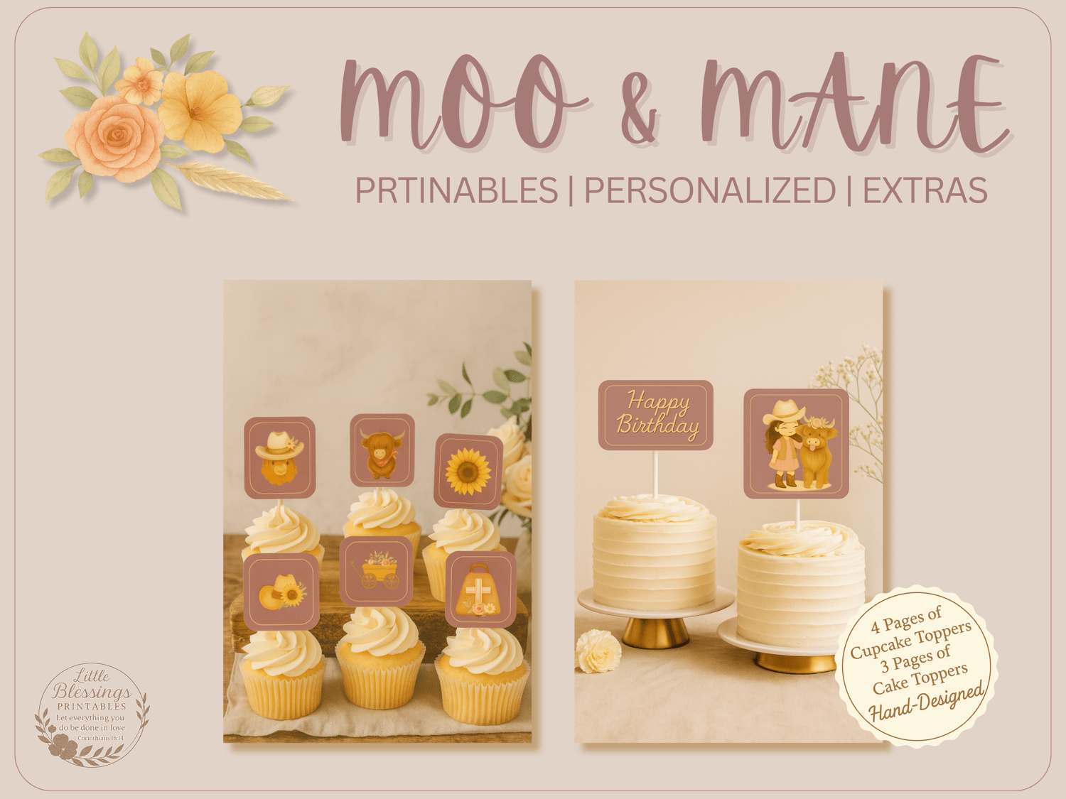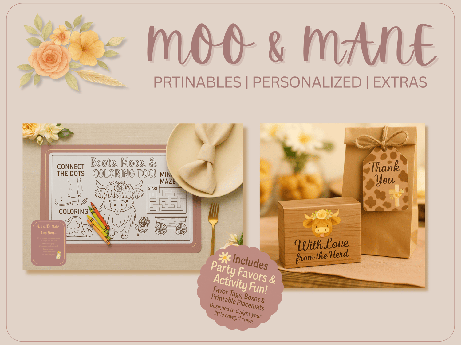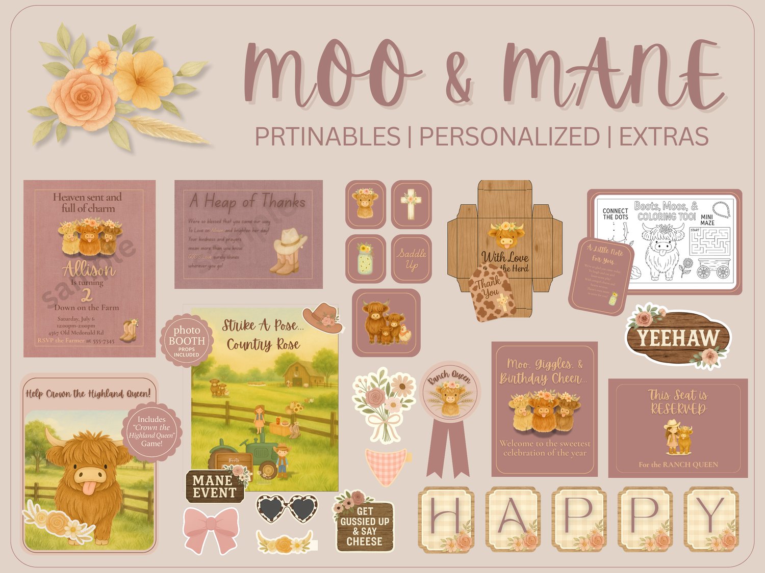Saddle up for a celebration full of charm, florals, and birthday joy! The Moo & Mane printable party collection brings together sweet Highland cows, western cowgirl details, and soft country florals to help you create a truly unforgettable event.