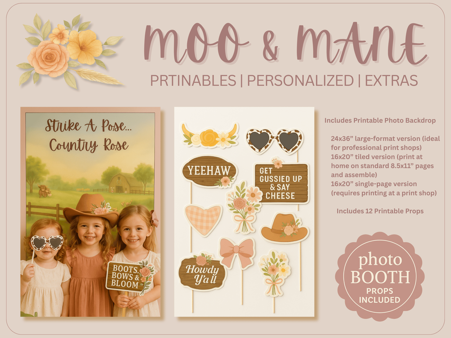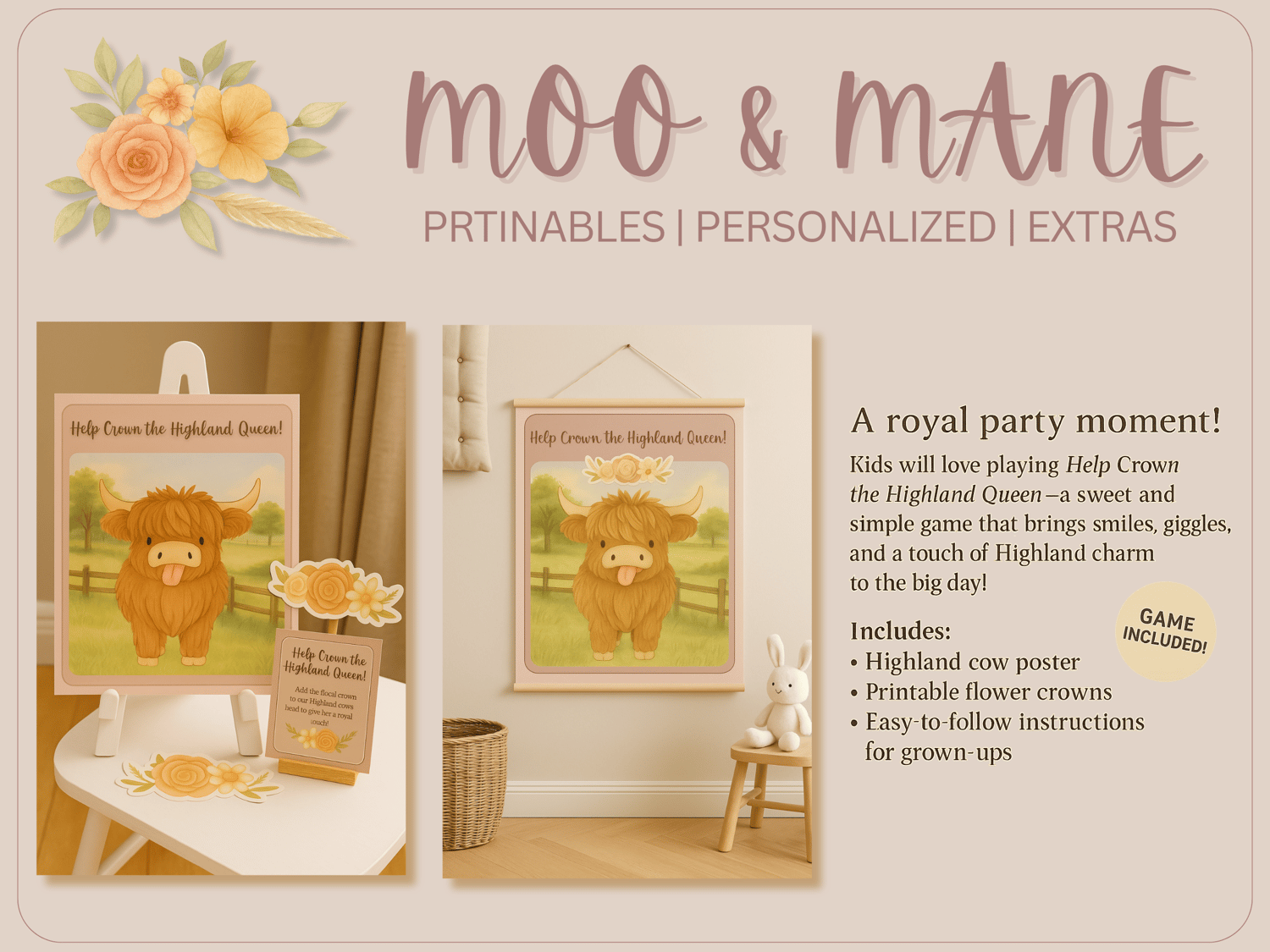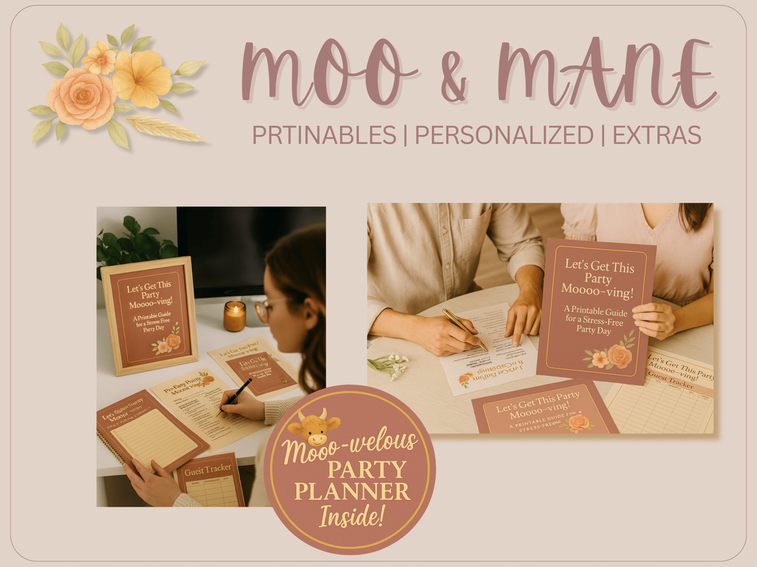 Saddle up for a celebration full of charm, florals, and birthday joy! The Moo & Mane printable party collection brings together sweet Highland cows, western cowgirl details, and soft country florals to help you create a truly unforgettable event.