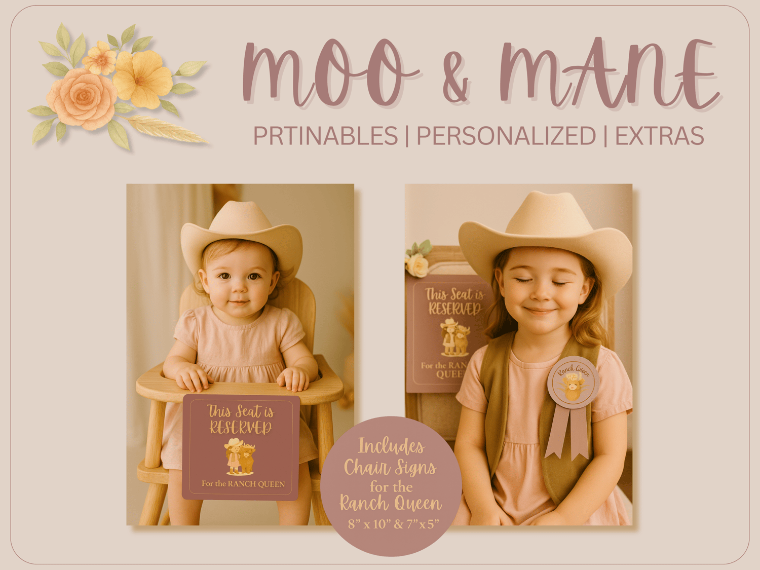 Moo & Mane Cowgirl Birthday Party Collection – Highland Cow Printable Decor for Girls