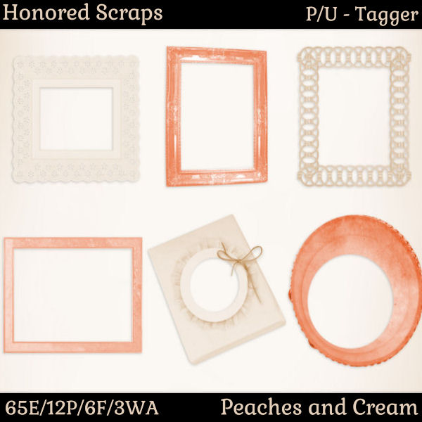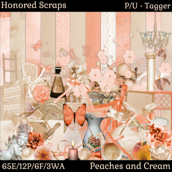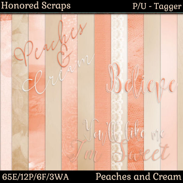 Peaches and Cream is a tagger kit that consists of 65 elements, 12 papers, 6 frames and 3 word art.