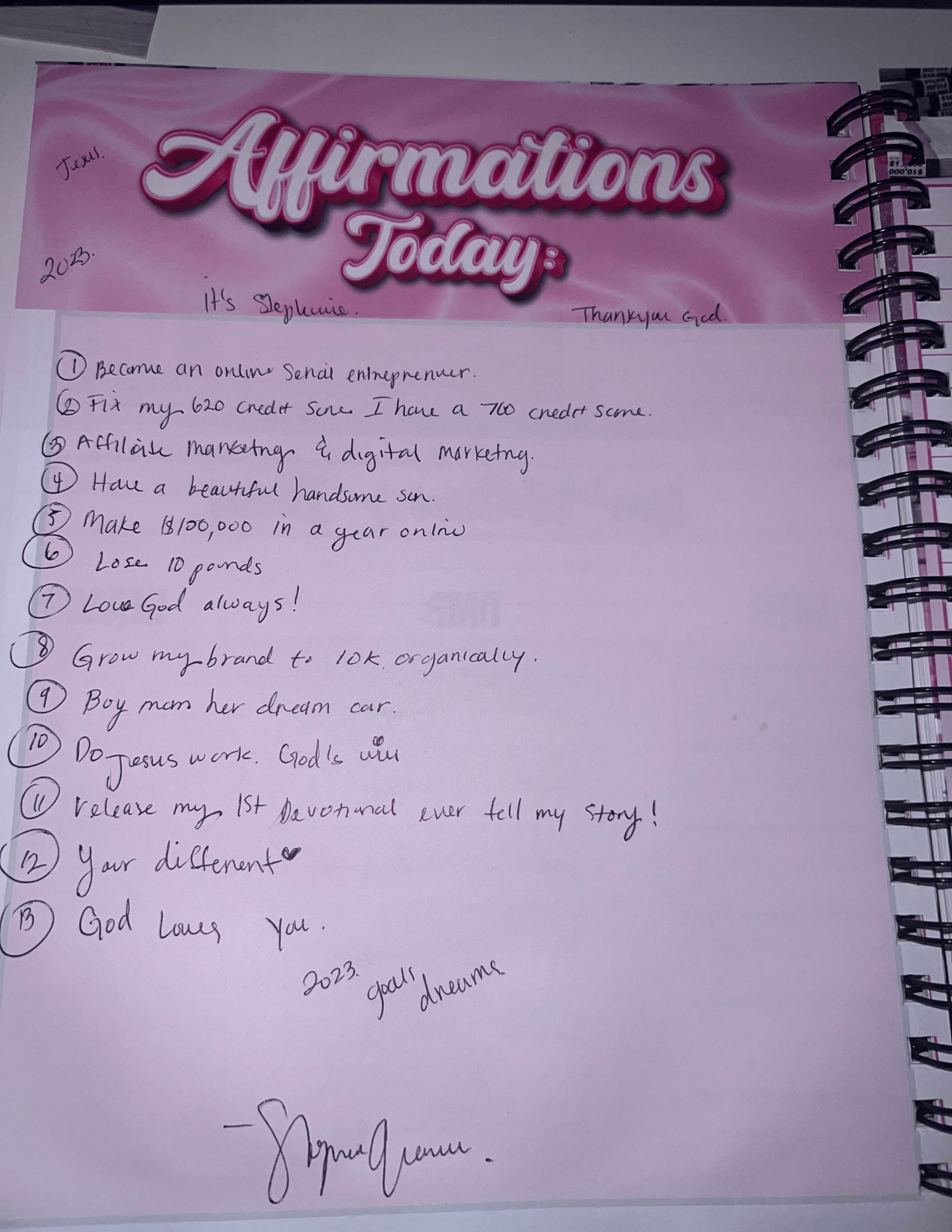 - Writing manifestations in faith turns prayers into declarations.
