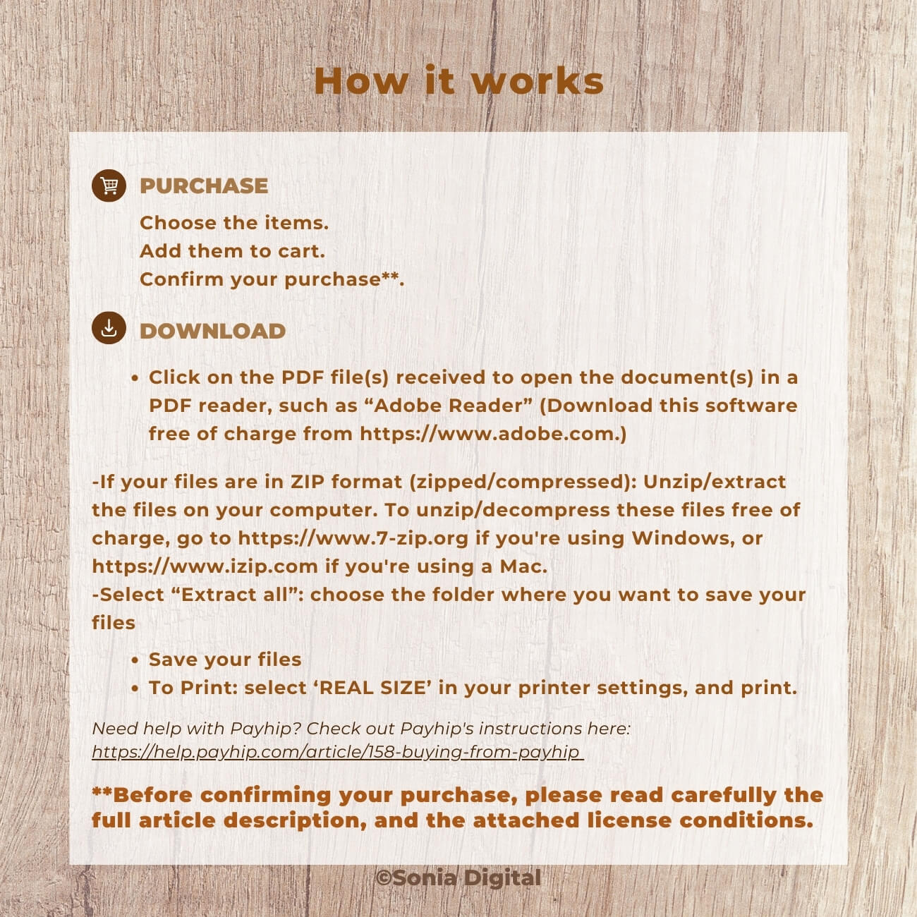 ▶️ Note: PDF ONLY: YOU Print. This is a DIGITAL PRODUCT and downloading is instantaneous. NO printed / physical product will be sent/shipped to you.