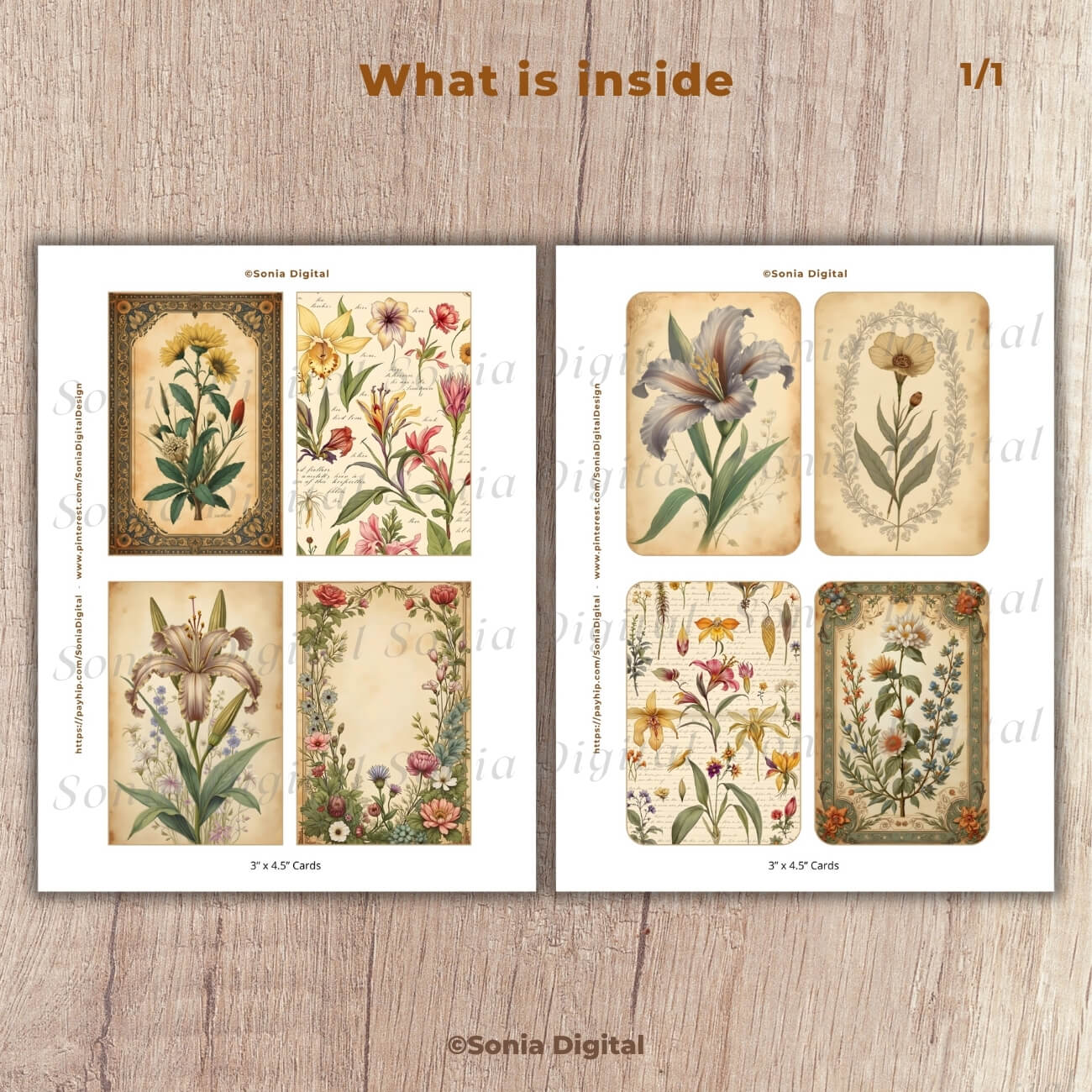 2 printable pages, containing 8 Cards 3”x4.5” “Retro Botanical” Collection, for Scrapbooking and Junk Journal creations. Letter size (8.5”x11”). Commercial use license included*