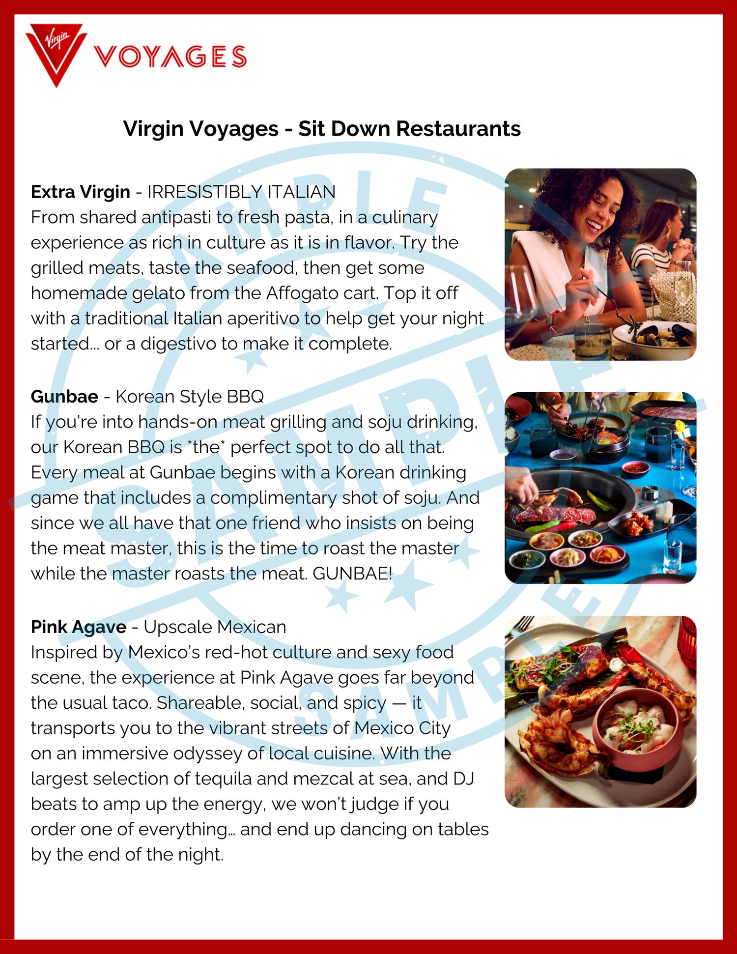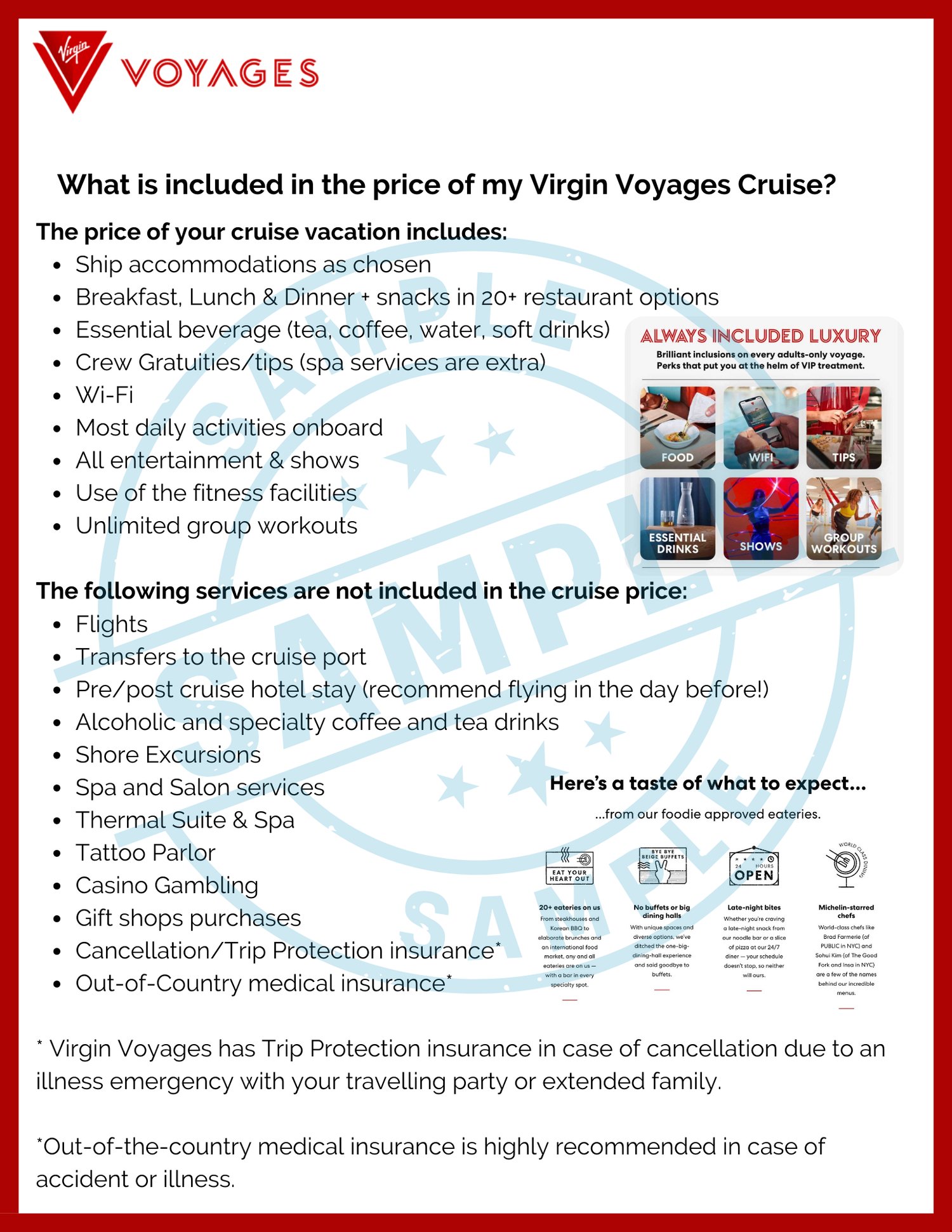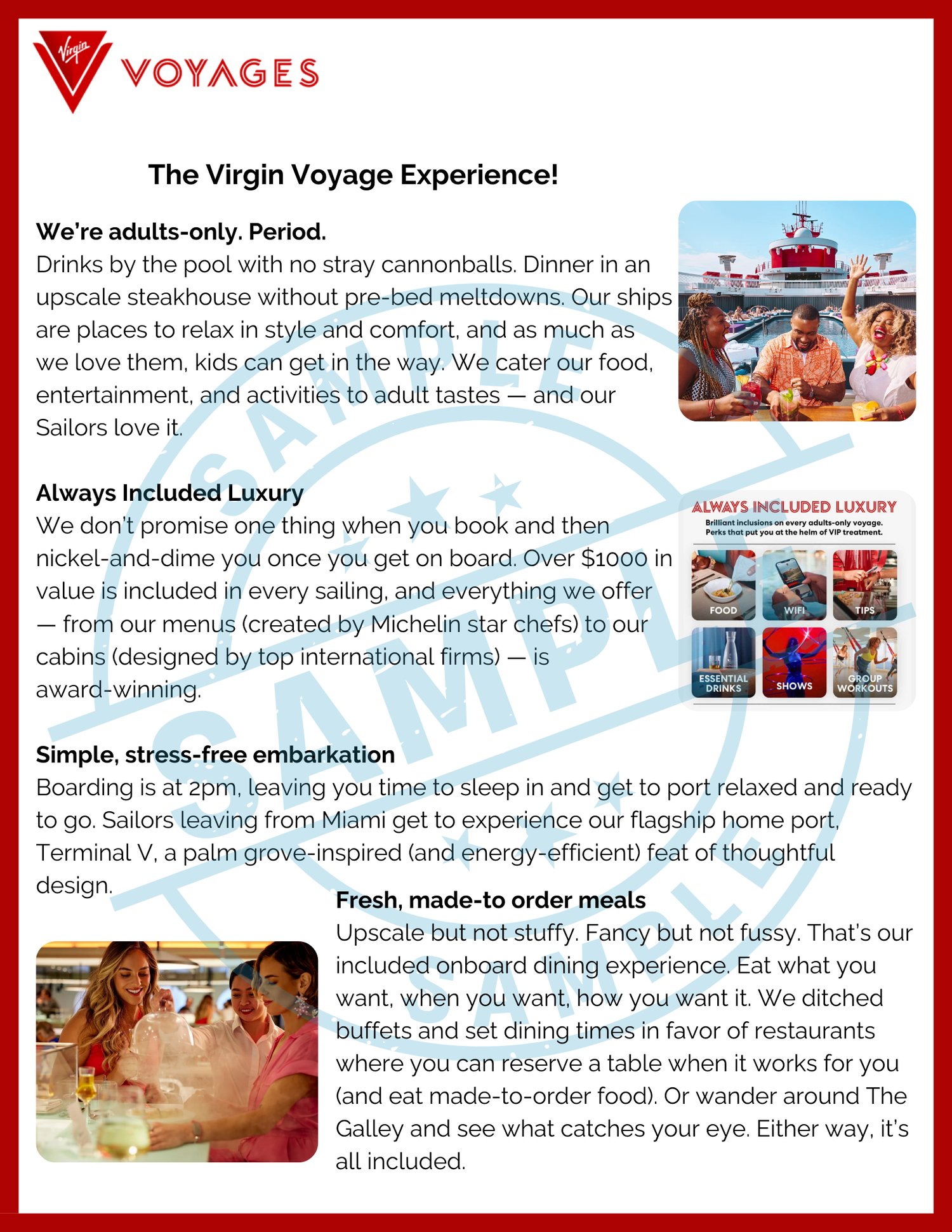 Each Package Contains Information & Graphics on Virgin Voyages Cruise Line Specific Topics:
