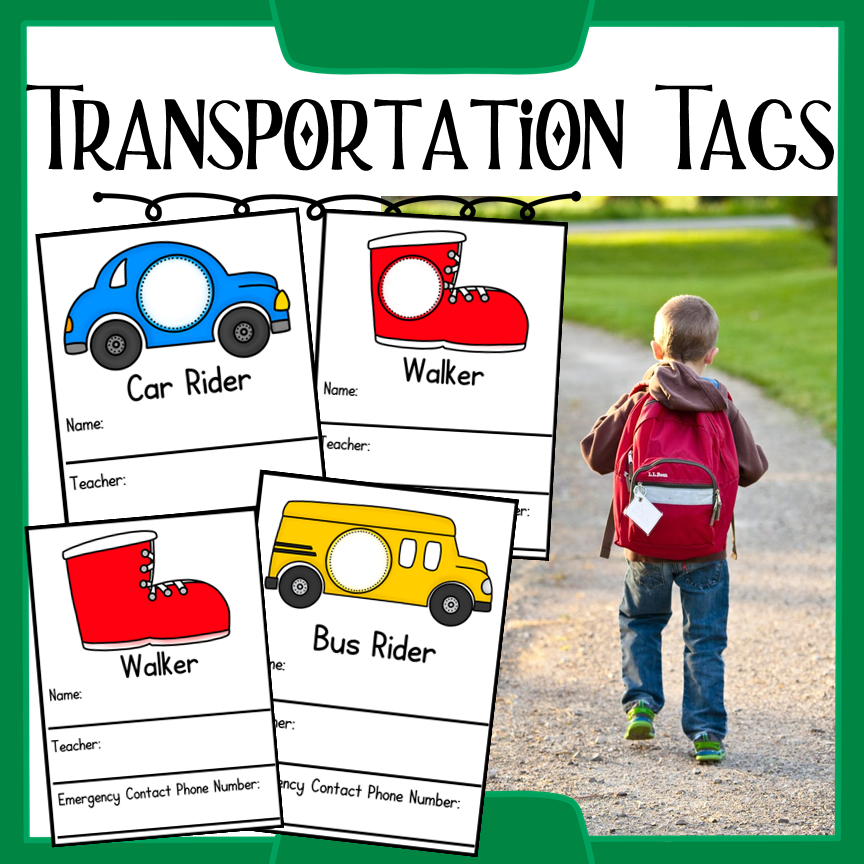 Awesome tags for your kiddos to display whether they are walkers, bus riders, or car riders. There are 8 versions for each tag -4 in color and 4 in black and white. There will also be versions for use in landscape or portrait depending on your choice. Perfect to print and insert in an ID badge or simply print, laminate, hole punch, and use with lanyard or safety pin.