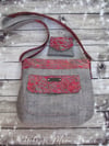 Thistle Cross Body Bag in Dark Pink Batik & Linen Blend Fabric