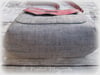 The bag measures 13 1/2" at the widest x 10 1/2" high x 4" deep. Made with a linen blend fabric and cotton batik exterior and cotton fabric interior. Plus stabilizer.