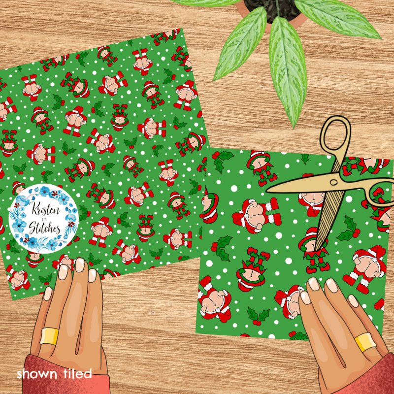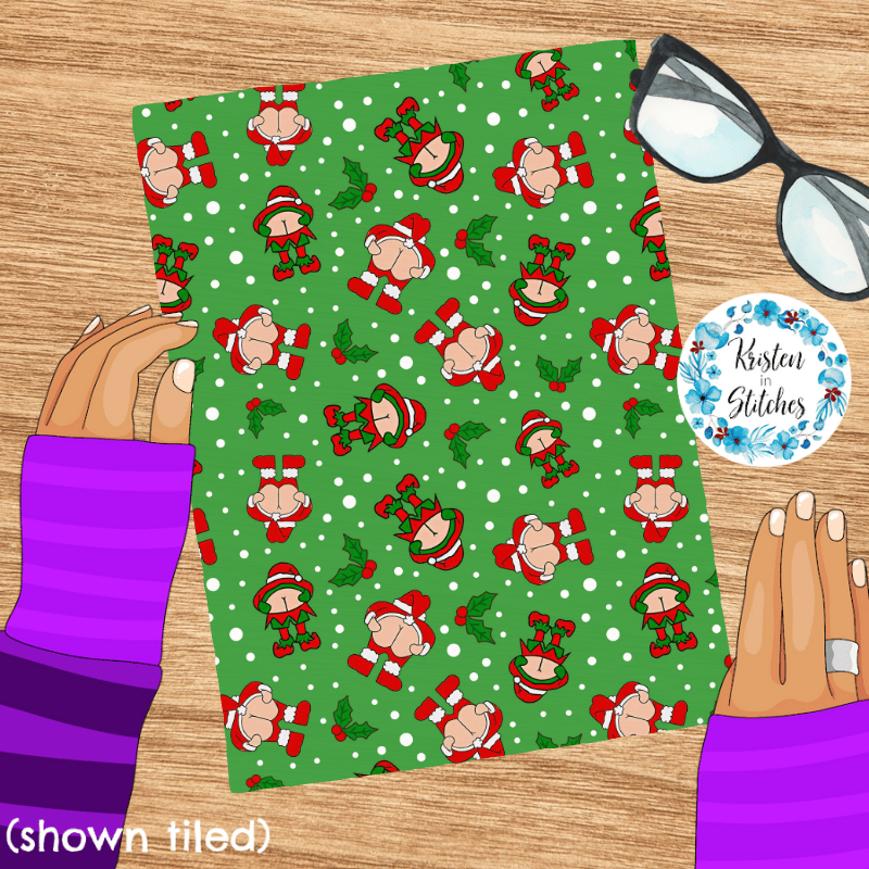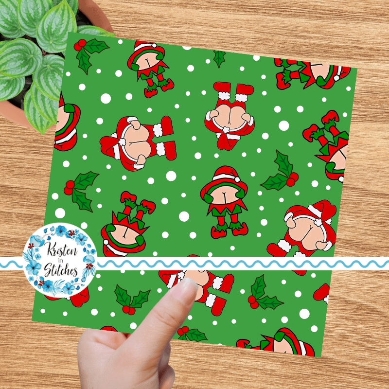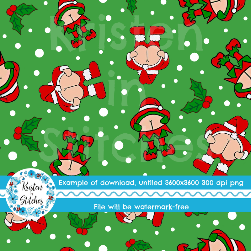 Cheeky Christmas Seamless Pattern, Kiss My Merry Ass, Santa Claus and Elves