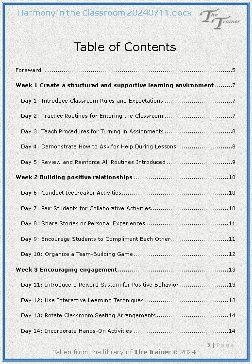 At the end of the booklet, you will find a checklist table that helps you track your progress and ensure that all steps are completed, creating a seamless flow and process for achieving classroom harmony.