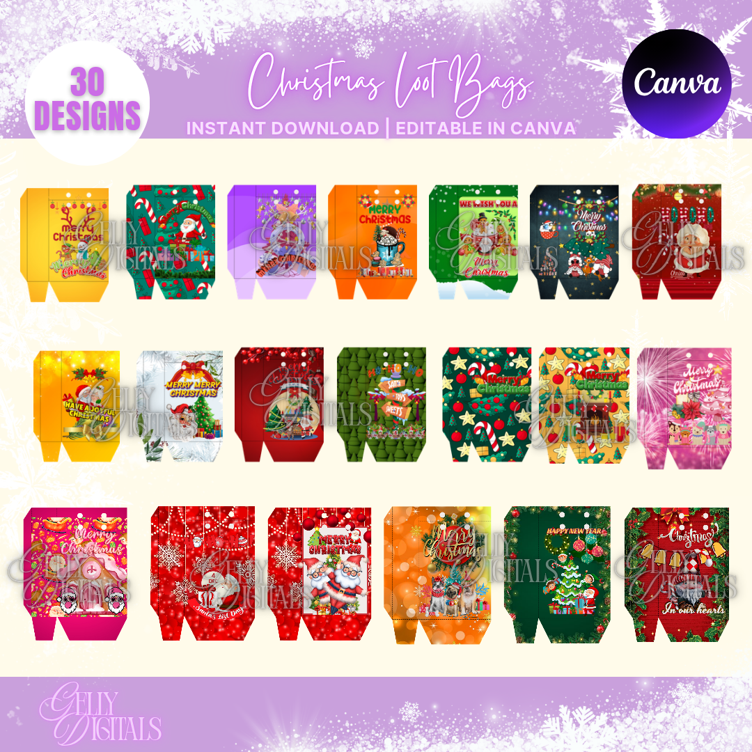 Add a personal touch to your holiday gifts with our Christmas Loot Bags collection! Available in 30+ unique designs, these printable bags are fully customizable and perfect for any occasion. Whether you're preparing for a Christmas party, gifting loved ones, or creating holiday gift sets, our designs will make your presents stand out! Easy to download and edit in Canva—just personalize, print, and fill with joy! 🎅🎁
