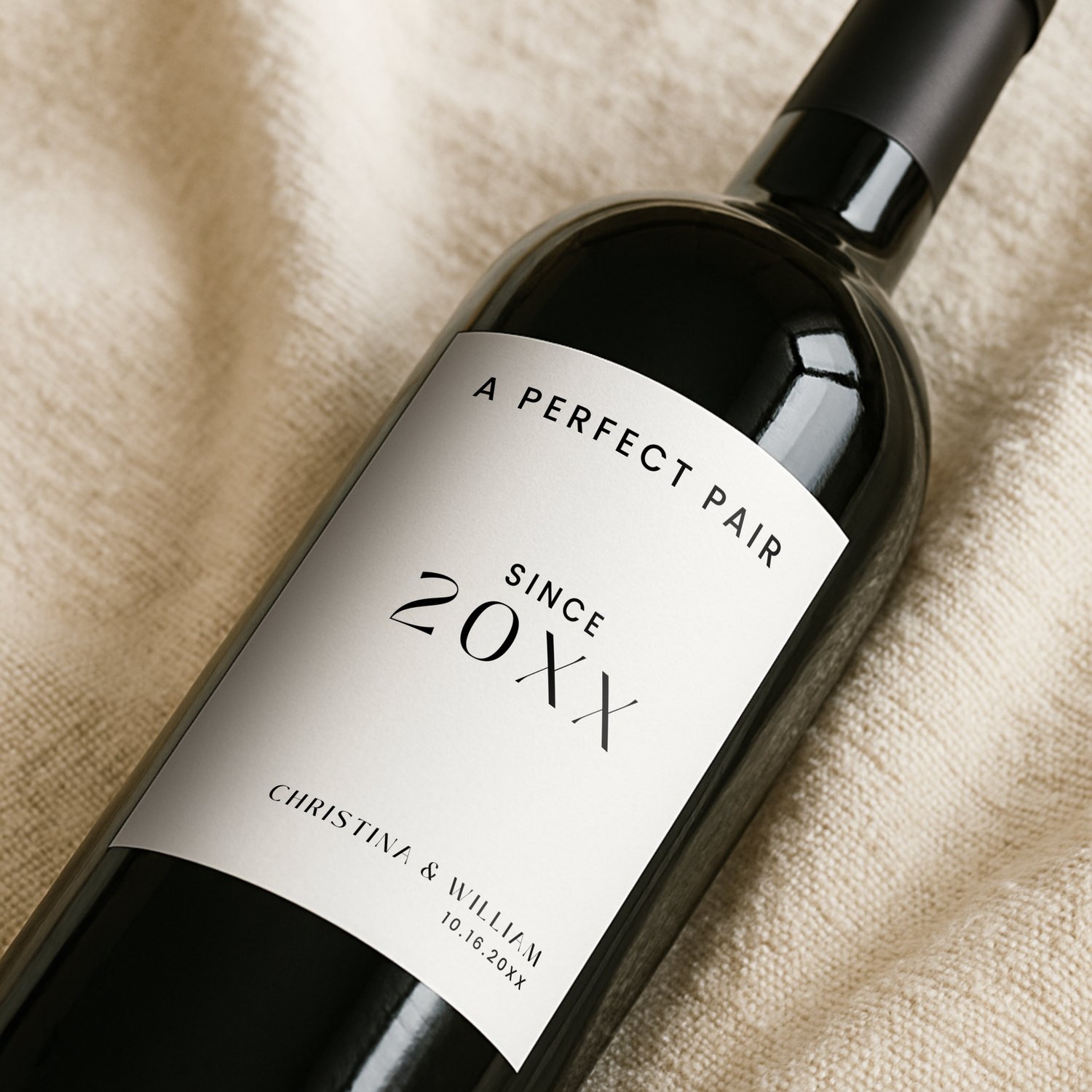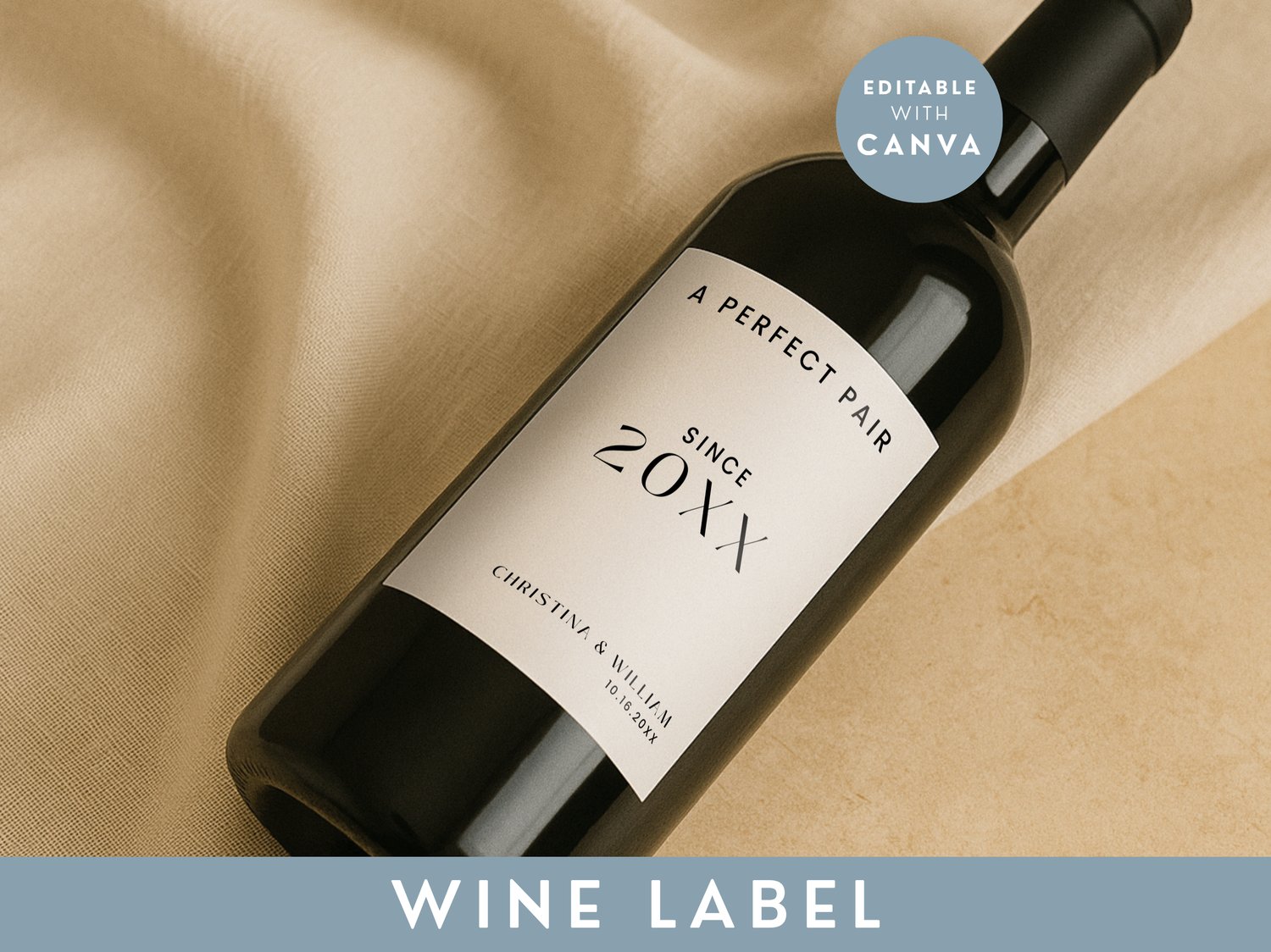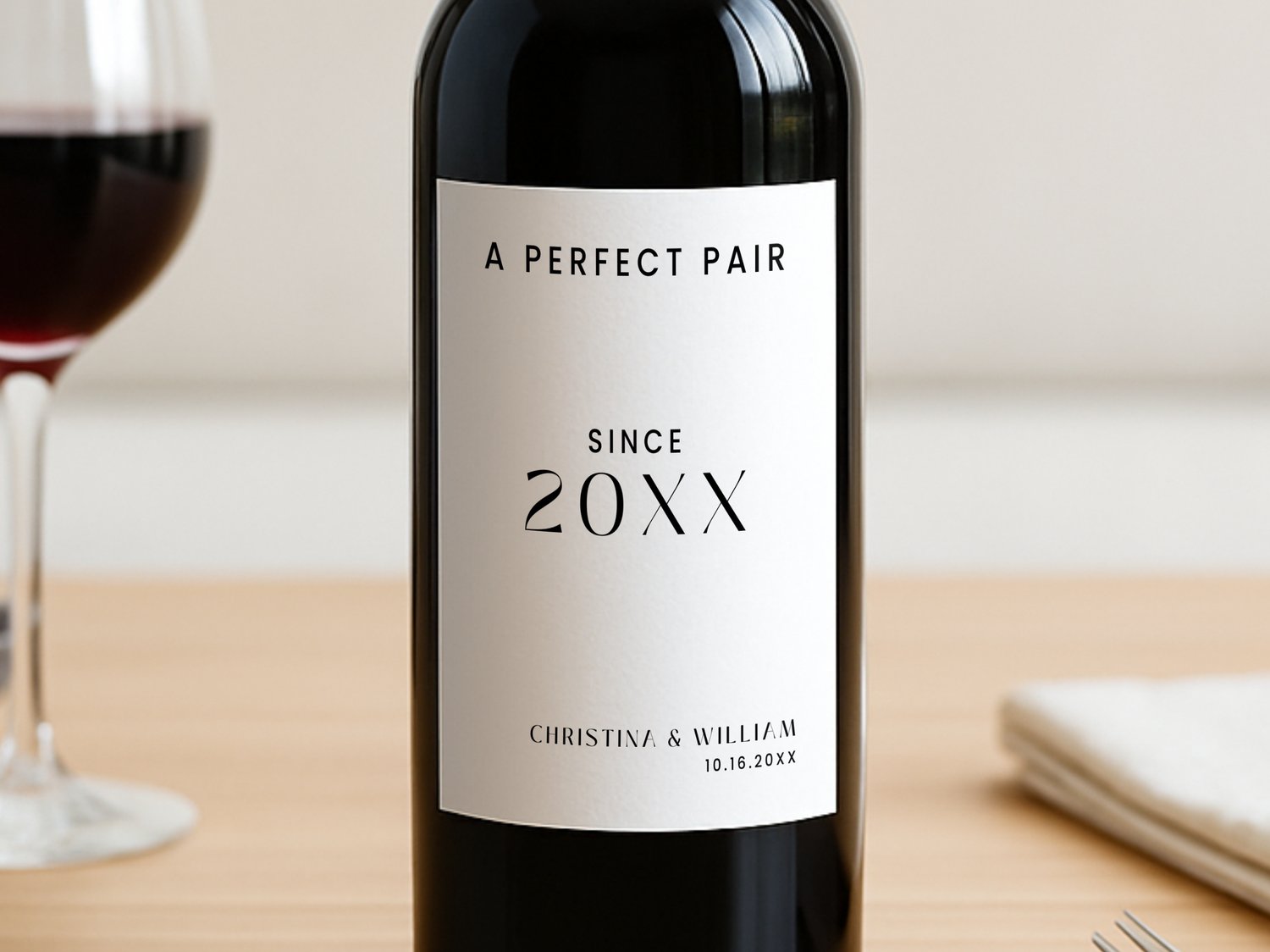 This Wedding Wine Label Template creates an elegant custom favor for your event. The printable, personalized design wraps beautifully around bottles, adding a refined touch to your reception table decor.
