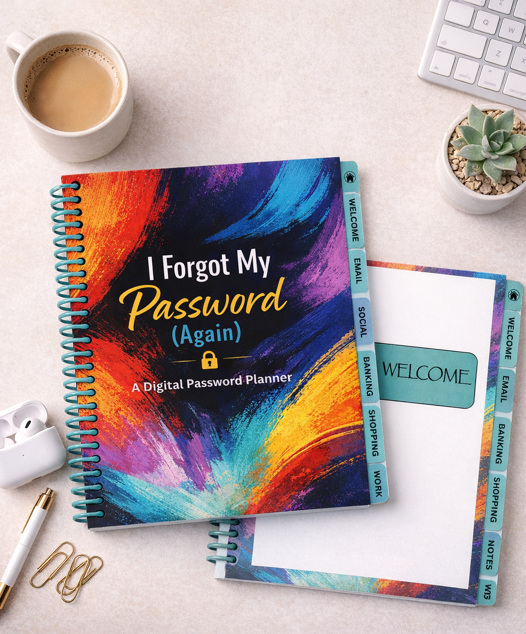 Tired of forgetting passwords or resetting accounts over and over again? This Digital Password Planner helps you keep all your important login details organized in one safe, easy-to-use place. Designed for everyday life β not tech experts, not business owners β just simple organization that works.