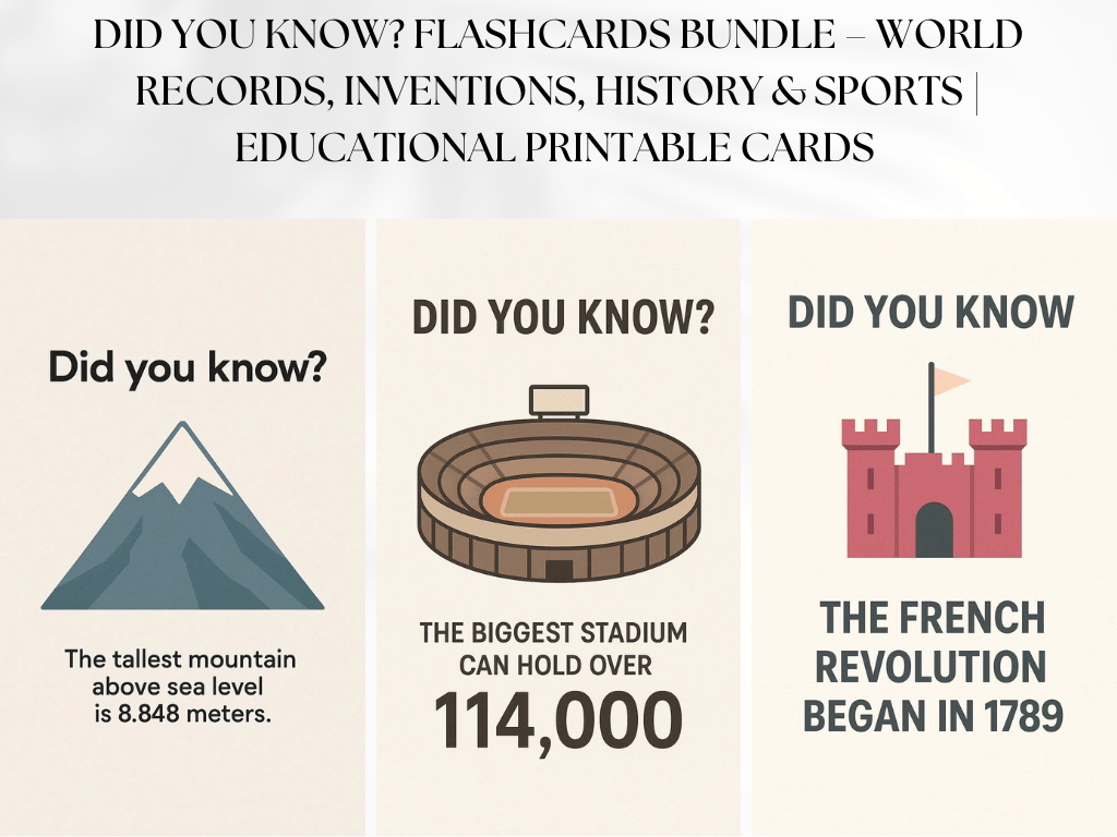 Did You Know? Flashcards Bundle – World Records, Inventions, History & Sports | Educational Printable Cards