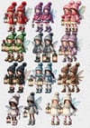 Gorgeous winter fairies. 22 fairies, blonde, brunette and darker skin girls. 2 Separate backgrounds; one blue, one gold with scroll for personalisation. 24 PNG files