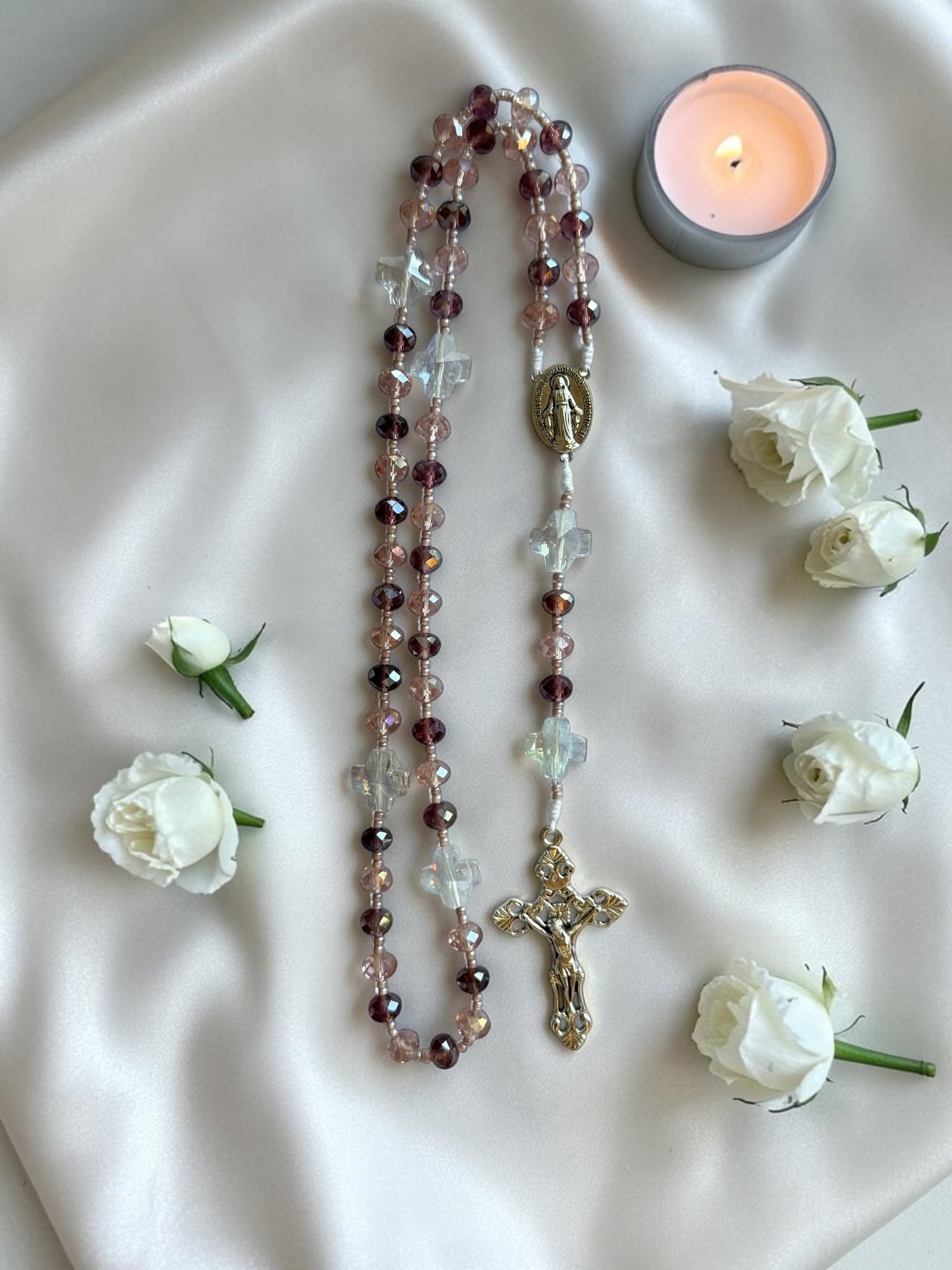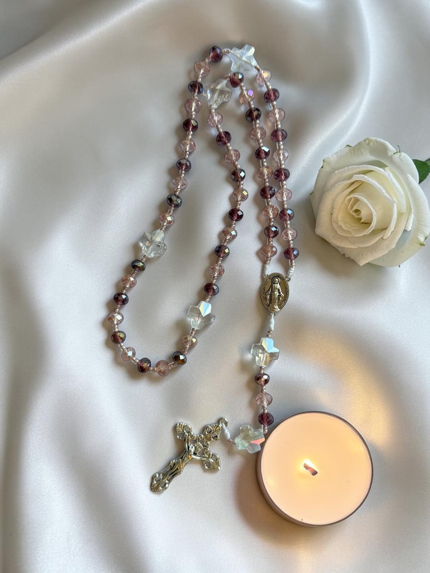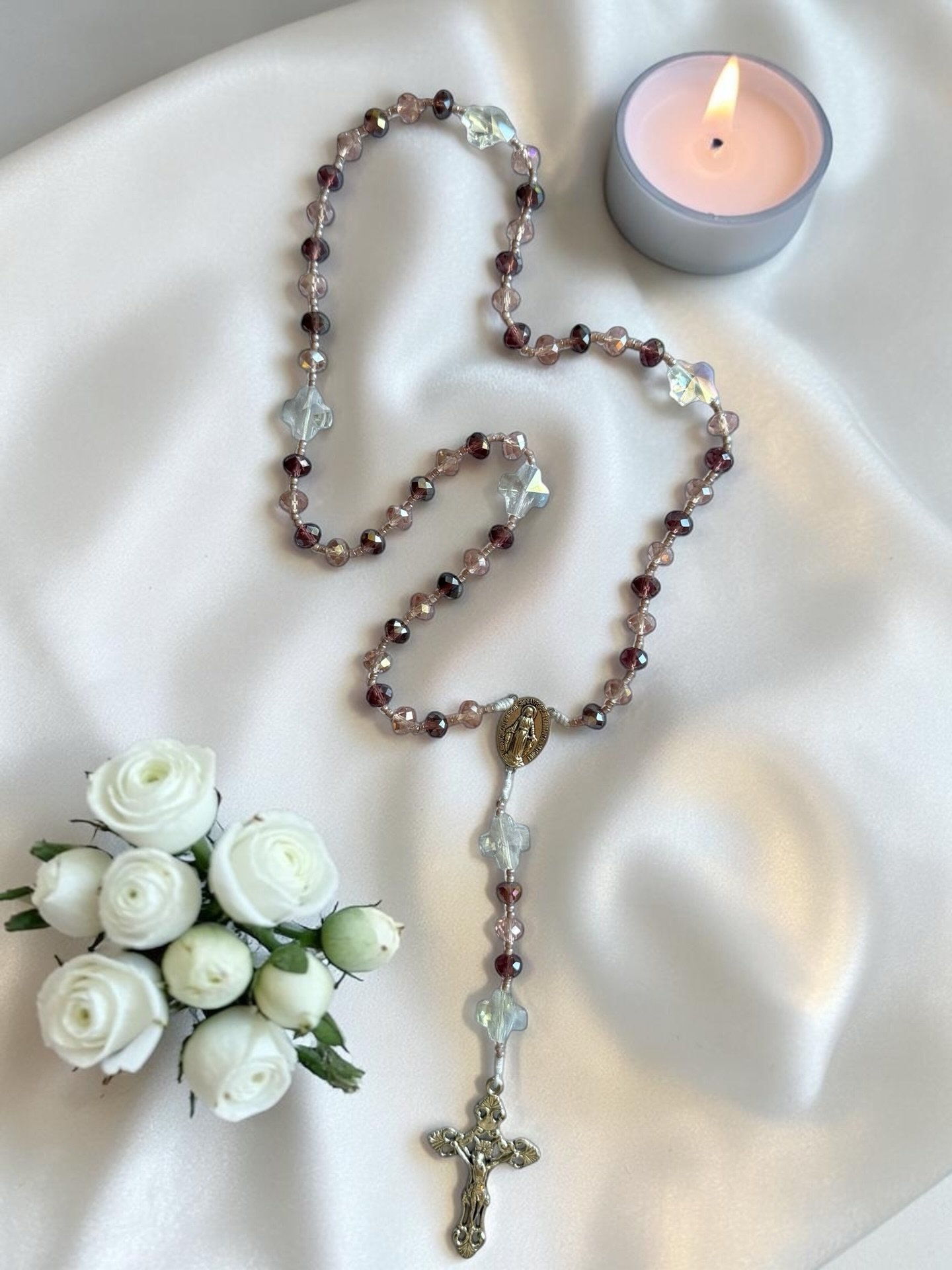 There is something sacred about holding beauty in your hands while lifting your heart to God. This Burgundy & Aurora Crystal Premium Rosary was made for those moments — quiet mornings, faithful evenings, and every prayer in between.