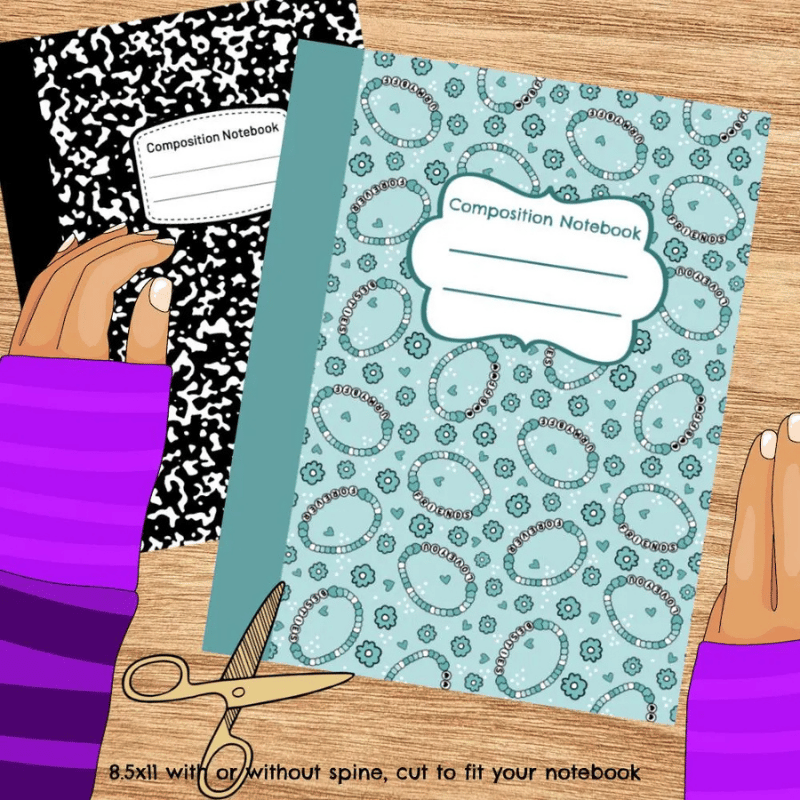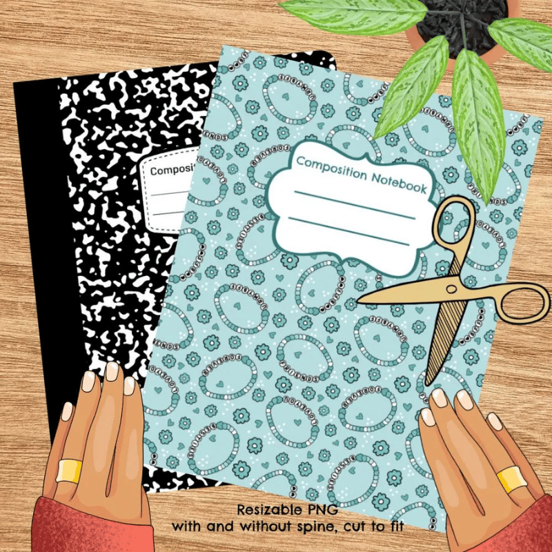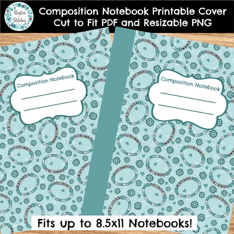 Composition Notebook Cover, Printable Resizable PNG, PDF, Friendship Bracelets