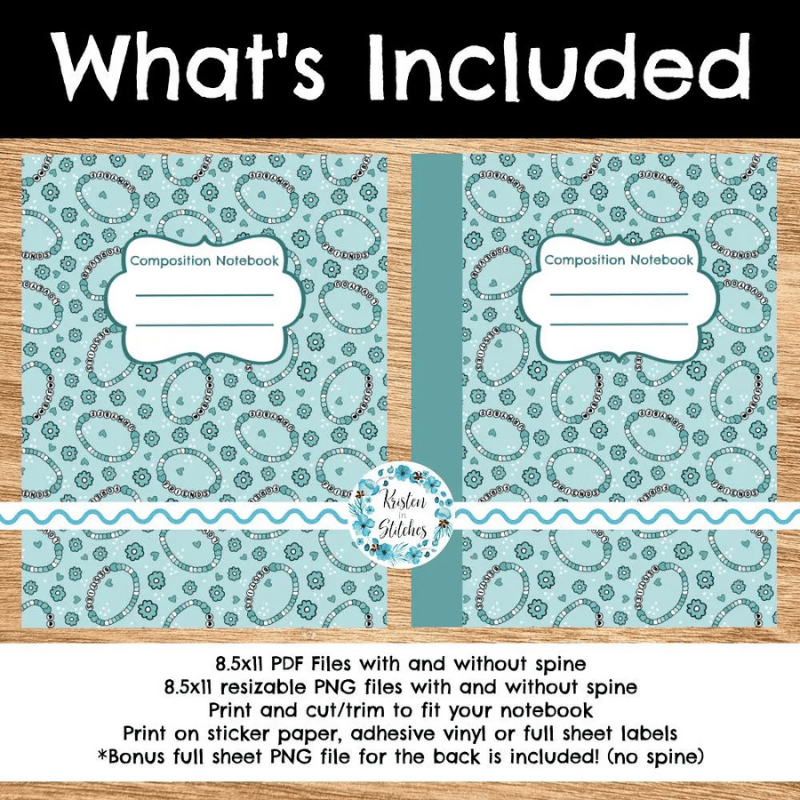 No more boring black and white composition books! This printable cover will make your notebook stand out! Size to fit any notebook up to 8.5x11- just print, cut and stick. Composition book measurements differ from brand to brand- you don't have to worry about sizing when you can cut it to fit perfectly.
