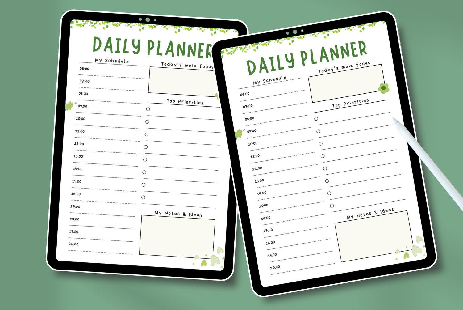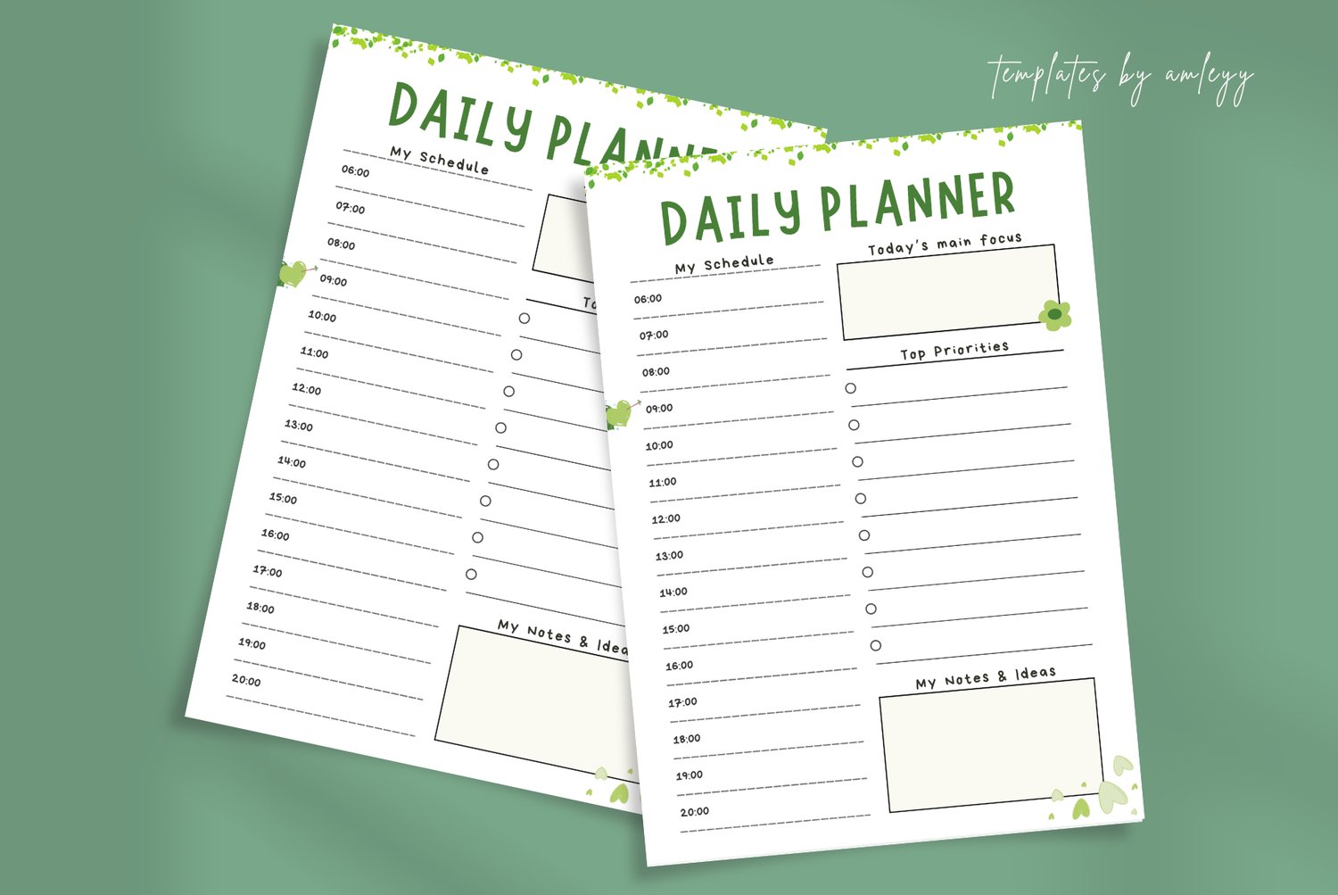 Achieve your daily goals with this charming and functional Kawaii Greenery Daily Planner Template! Designed with a fresh, nature-inspired theme, this planner helps you structure your entire day, from the early morning to the evening recap. It is fully editable in Canva, allowing you to easily change colors, fonts, and layout to match your personal style or commercial brand.