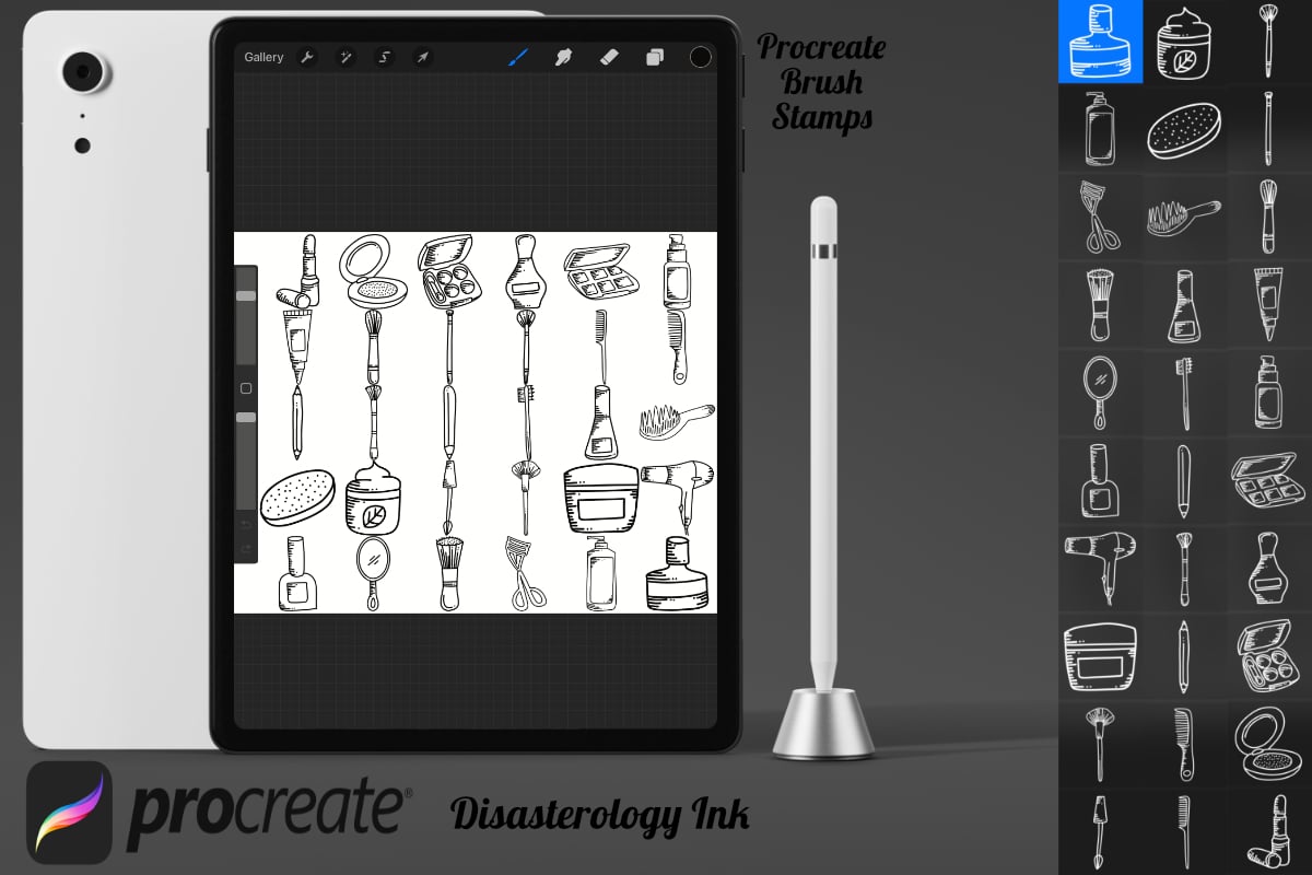 Procreate stamps save time when drawing, saving the effort of having to recreate the same thing for multiple designs and projects, save time on your design by purchasing these makeup icon brush stamps so you can utilise that time on creating more beautiful art.