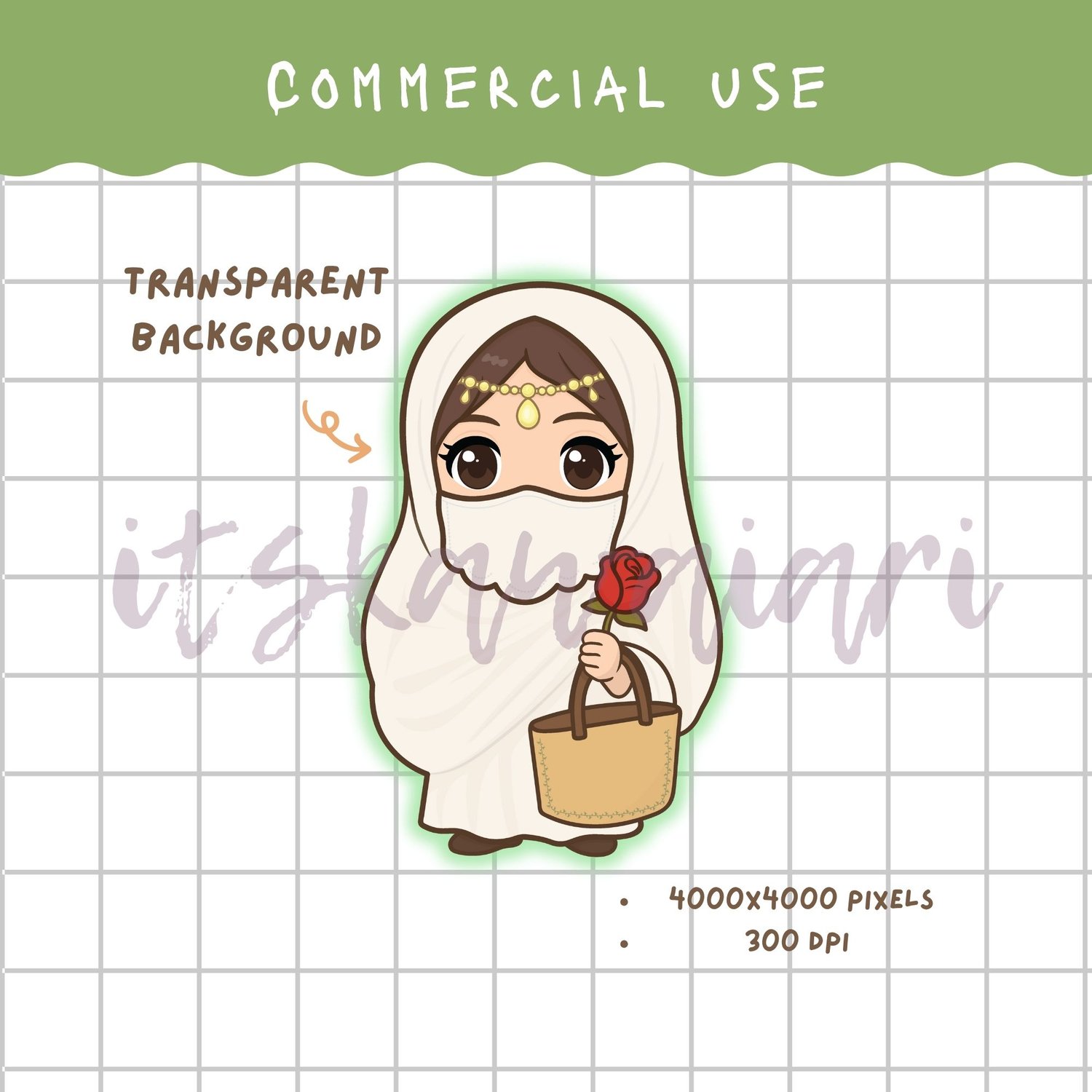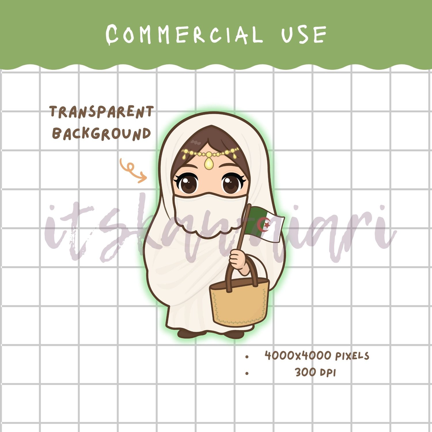 Chibi Algerian Girl in Hayek & Khait Elrouh | 2 Versions (Flag & Rose) | Instant Download | Commercial Use
