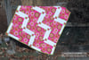 Multiple sizes are included in the pattern. For fabric requirements, view the second photo (click the photos to expand them). The Scrappy Precuts/Scrappy Fat Quarters Version on the cover (the neutral colored quilt) is Lap size. The Planned Yardage Version on the cover (the pink quilt) is Toddler size. Finished block is 11.5" square. This pattern is recommended for a beginner with basic quilting skills (piecing with accurate 1/4-inch seams, rotary cutting, pressing, and quilt finishing (basting, quilting, binding). Optionally, for quilt finishing the completed top can be sent to a longarmer for quilting and binding.