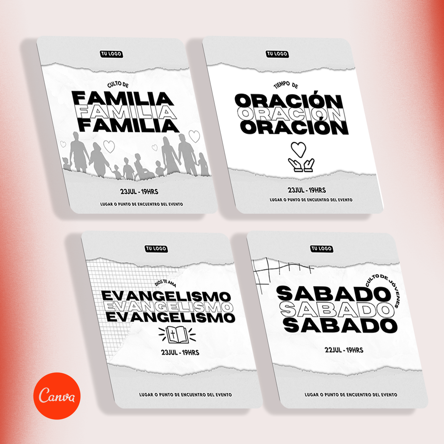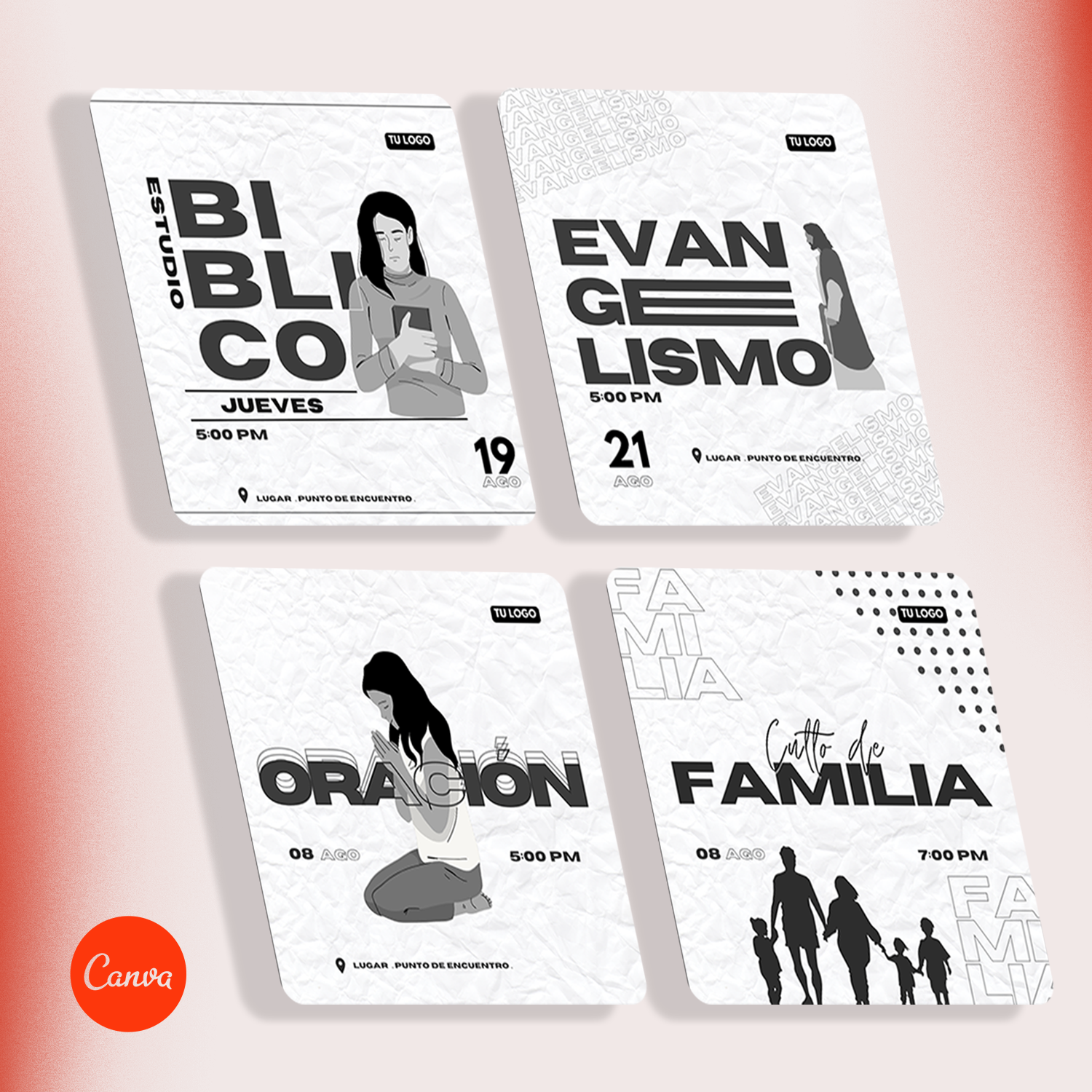 Este es un conjunto de varias plantillas en Canva ✨, ideales para diferentes usos: eventos de iglesia ⛪, cultos dominicales 🙏, redes sociales 📱, volantes 📝 y más. Todas las plantillas son totalmente editables en Canva Free, permitiéndote personalizar texto, colores, elementos y agregar íconos profesionales 🎨 fácilmente para dar un toque moderno y cuidado.