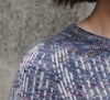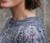 Waterfalls is a top-down, colourwork sweater featuring delicate cascades inspired by the movement of water and the composition Waterfalls by Alexis Ffrench.
