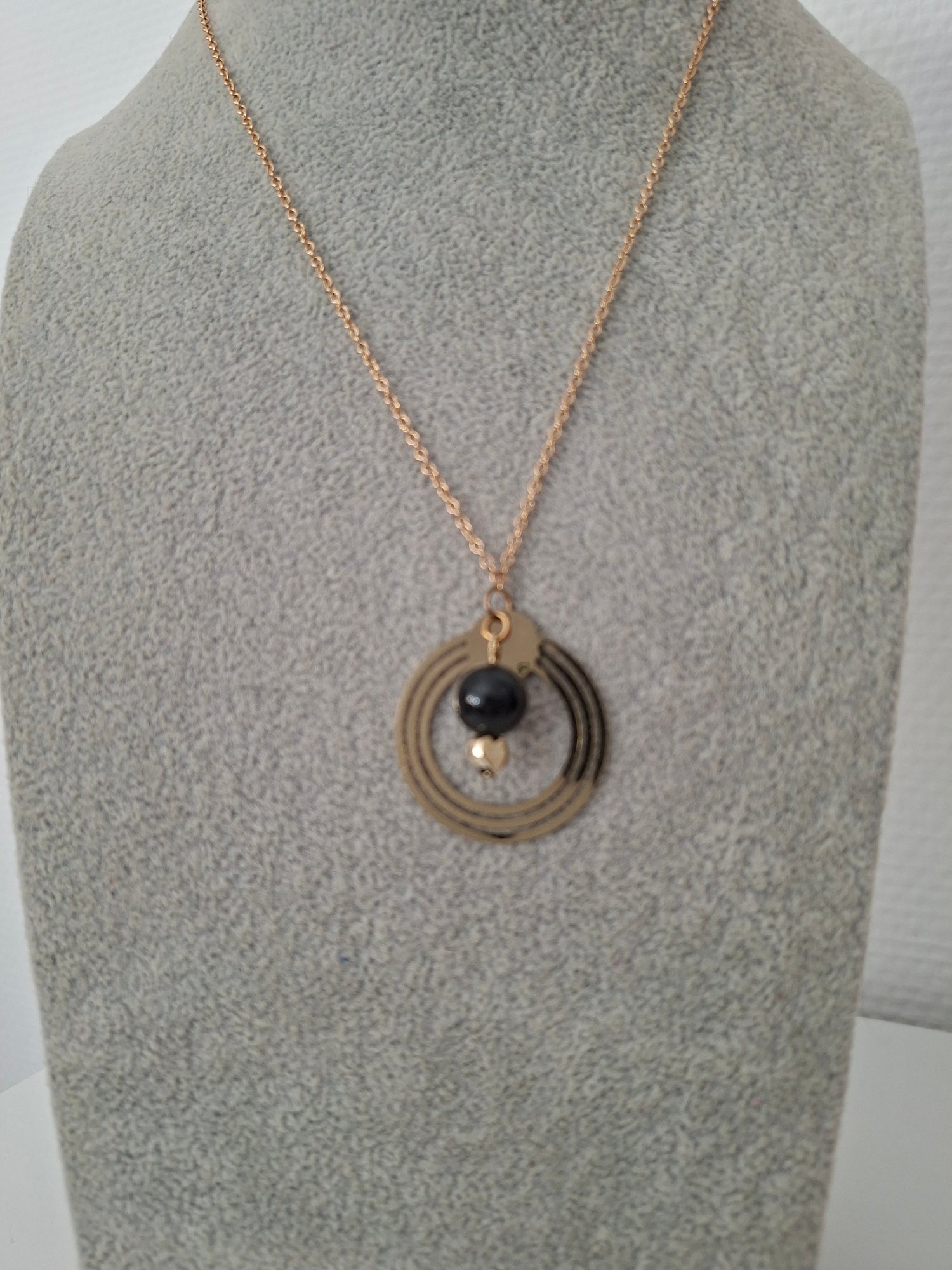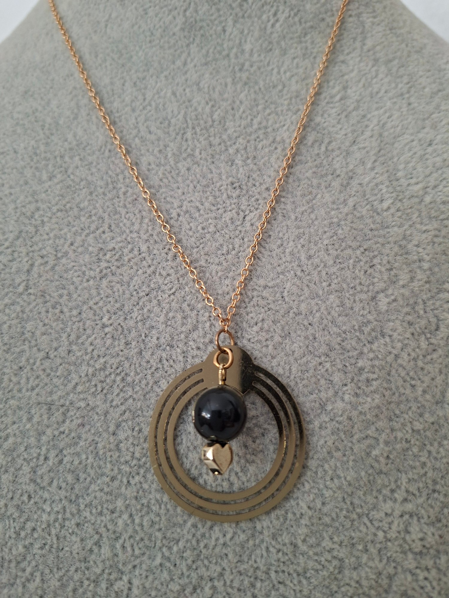 • Pendentif cercle doré avec perle de tourmaline noire naturelle