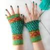 This is a pattern for a pair of mitts/fingerless gloves. Both are worked the same, from the cuff up and in the round, using the Fair-Isle knitting technique.