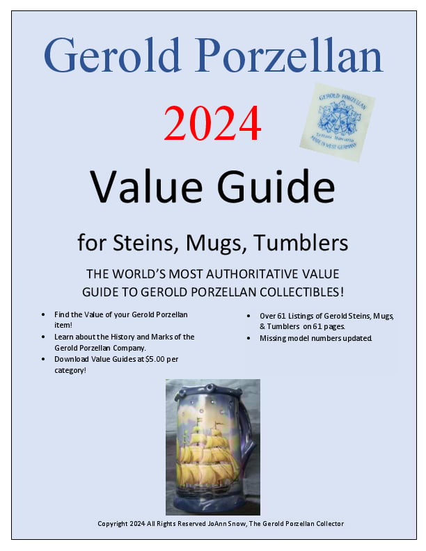 For $5.00, you can download a 2024 Digital PDF Value Guide for Gerold Porzellan Steins, Mugs, Tumblers, & Glasses. This Guide has over 61 listings of Gerold animal figurines on 61 pages.