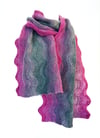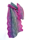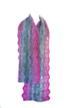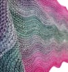Lapping waves, like the ocean sweeping onto the a beach at sunset, drift along the length of the Virtual Sunset Scarf. This garter stitch scarf is worked lengthwise and relies upon simple increases and decreases to create its wavy lines.