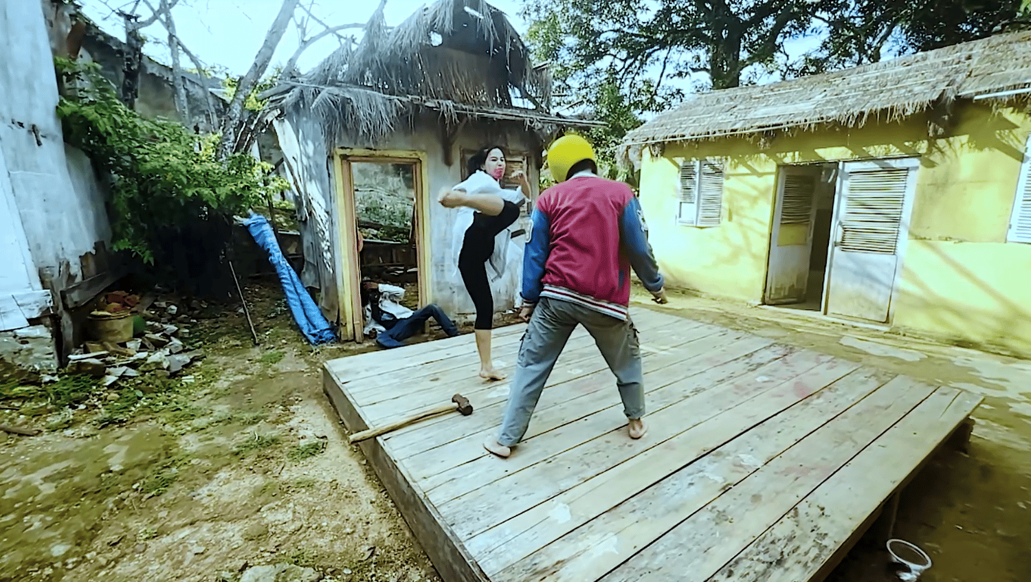 One of the baddies will use a sledgehammer on her, and they left her for dead..