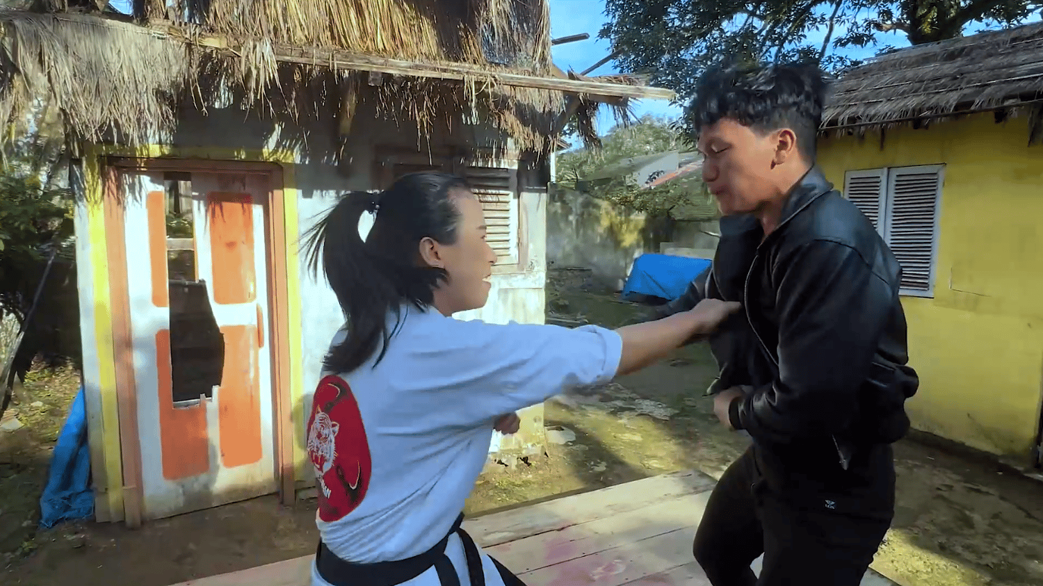 She will quite quickly and brutally dispose of them but ... one of them will throw something in her eyes